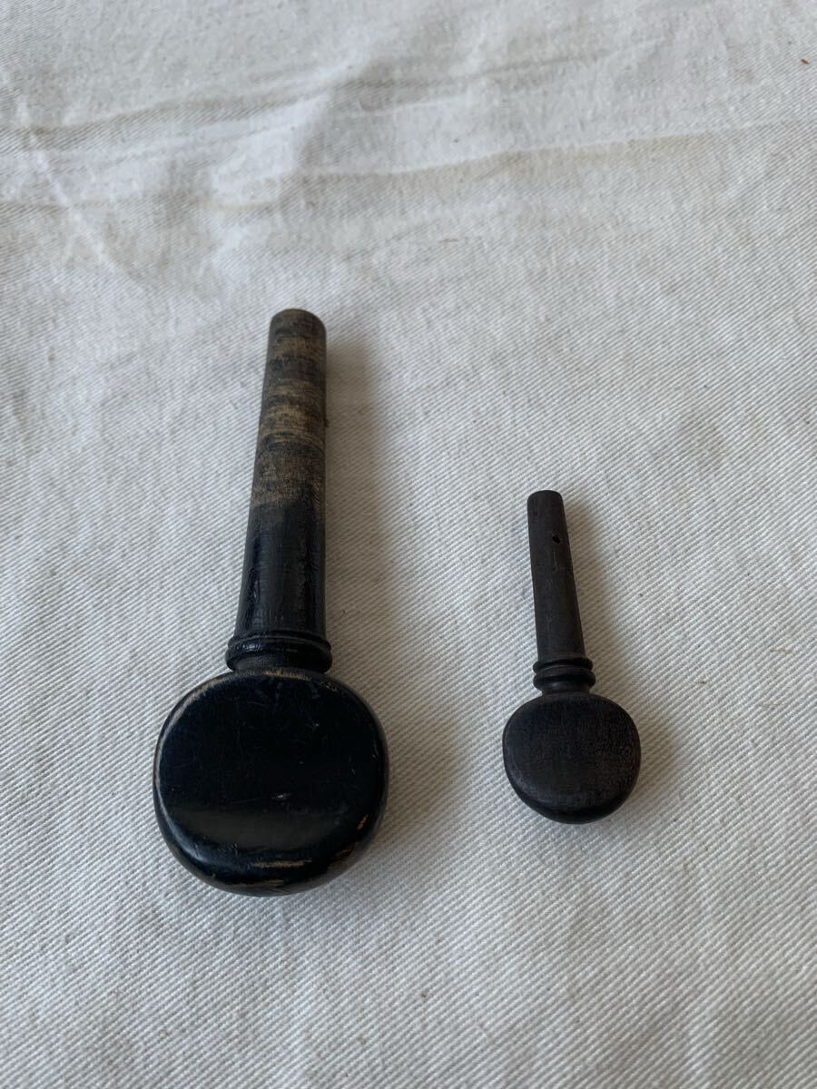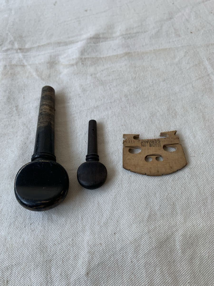 旧家蔵出し 木製ブリッジとペグ2個セットです。