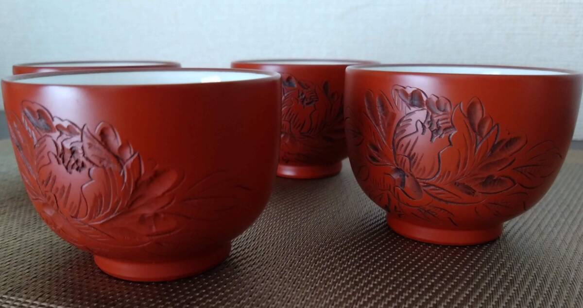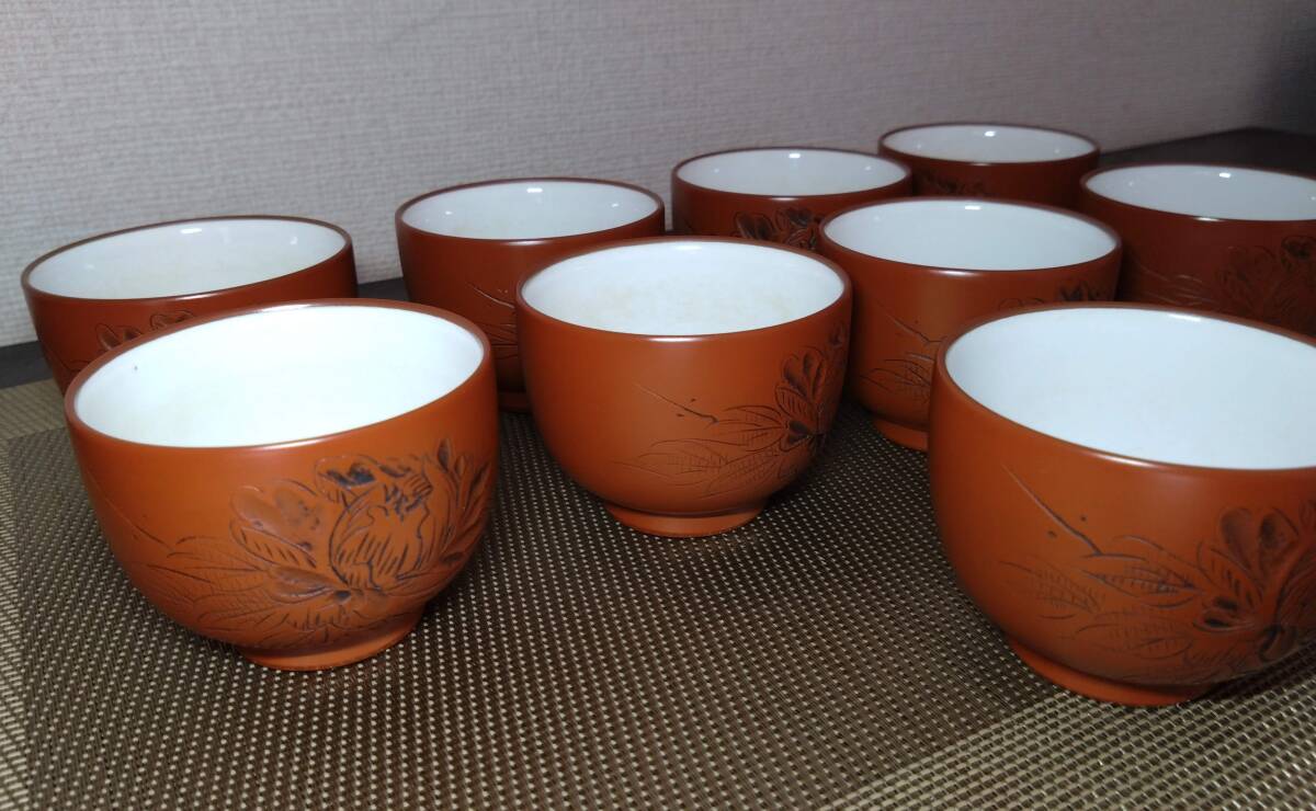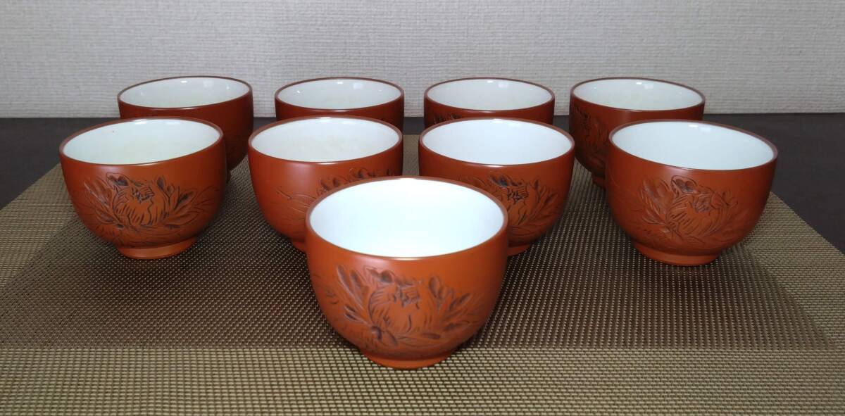 常滑焼 朱泥 茶器 湯呑9客セット 茶道具  ##