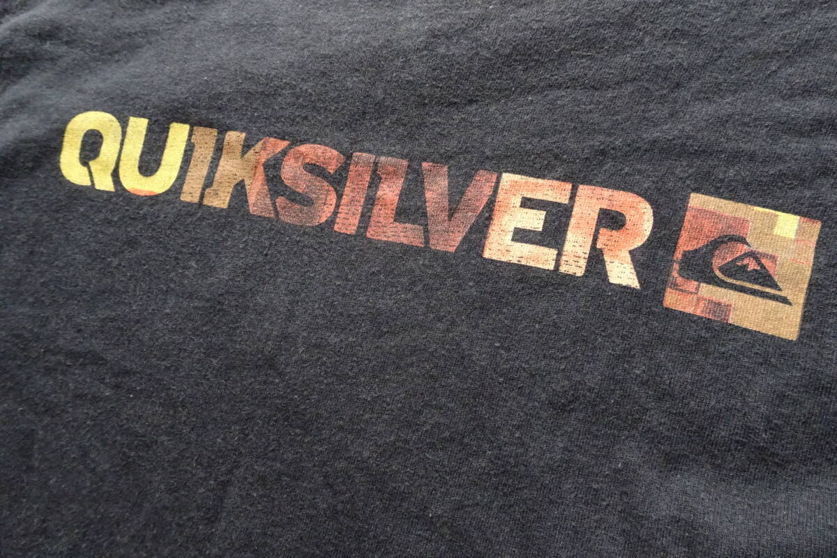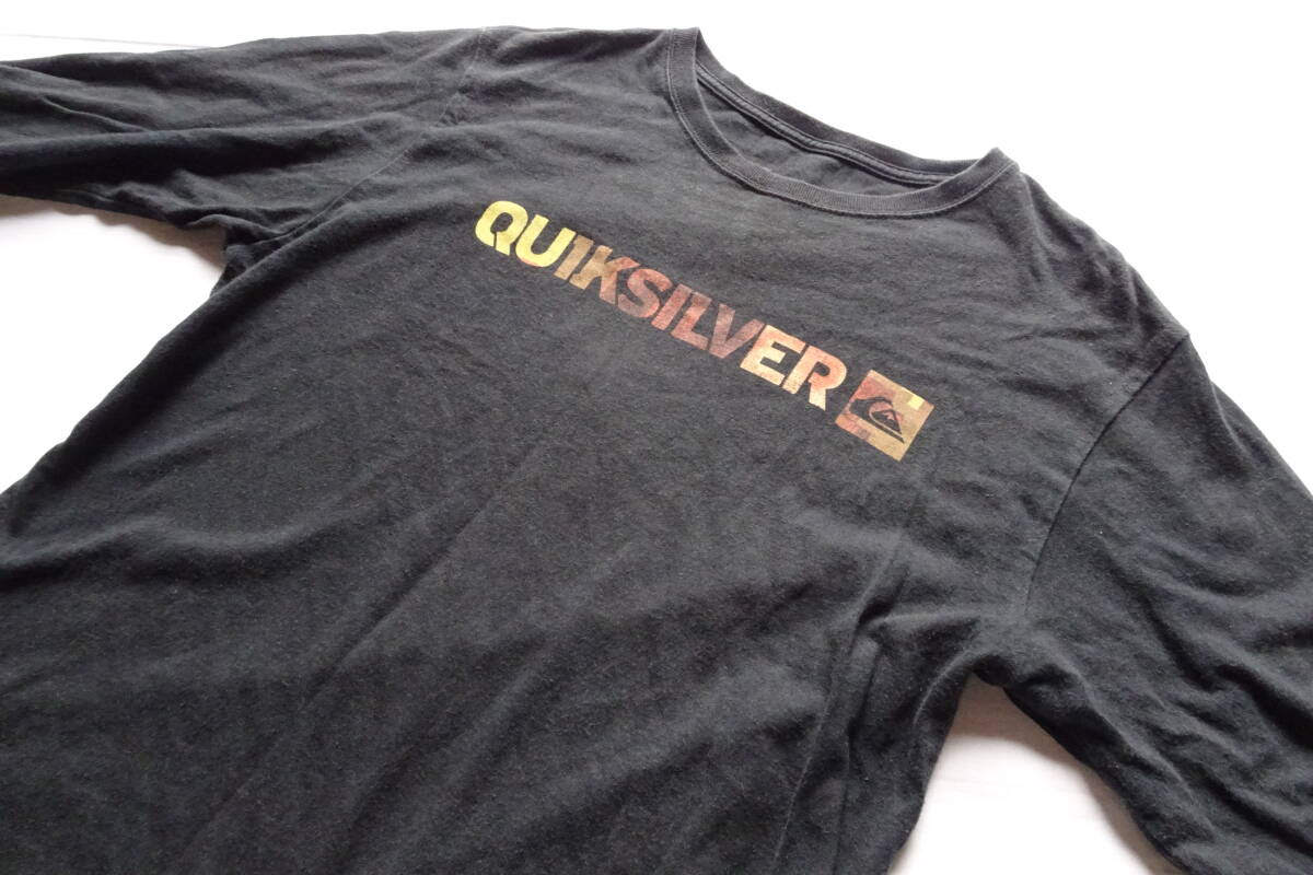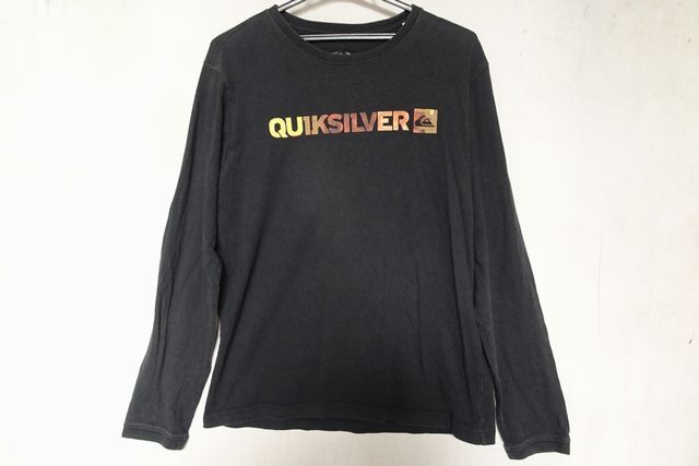QUICK SILVER/クイックシルバー/長袖Tシャツ/ロンT/クルーネック/ブランドネームプリント/袖口短めリブ/黒/ブラック/Mサイズ(9/10R7)
