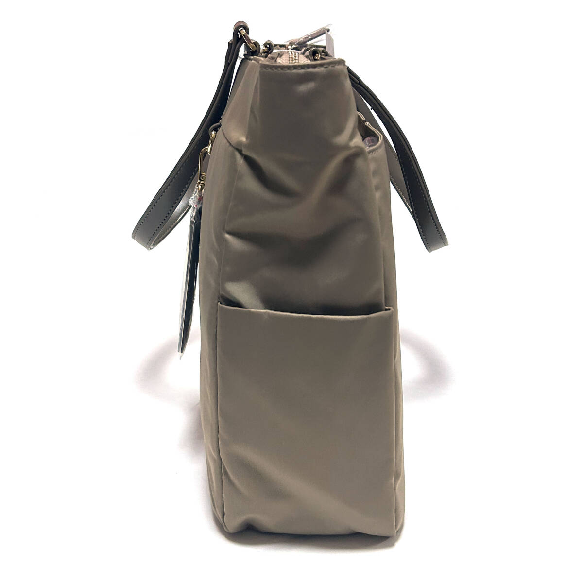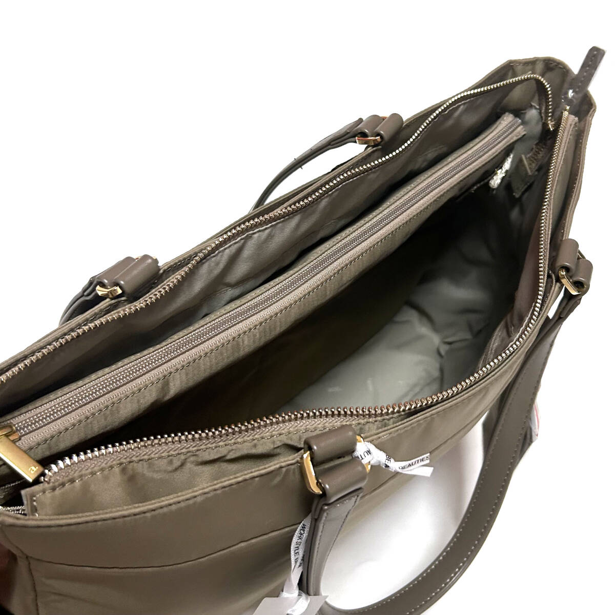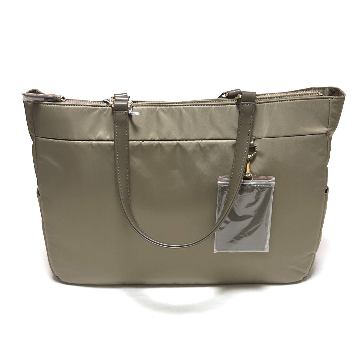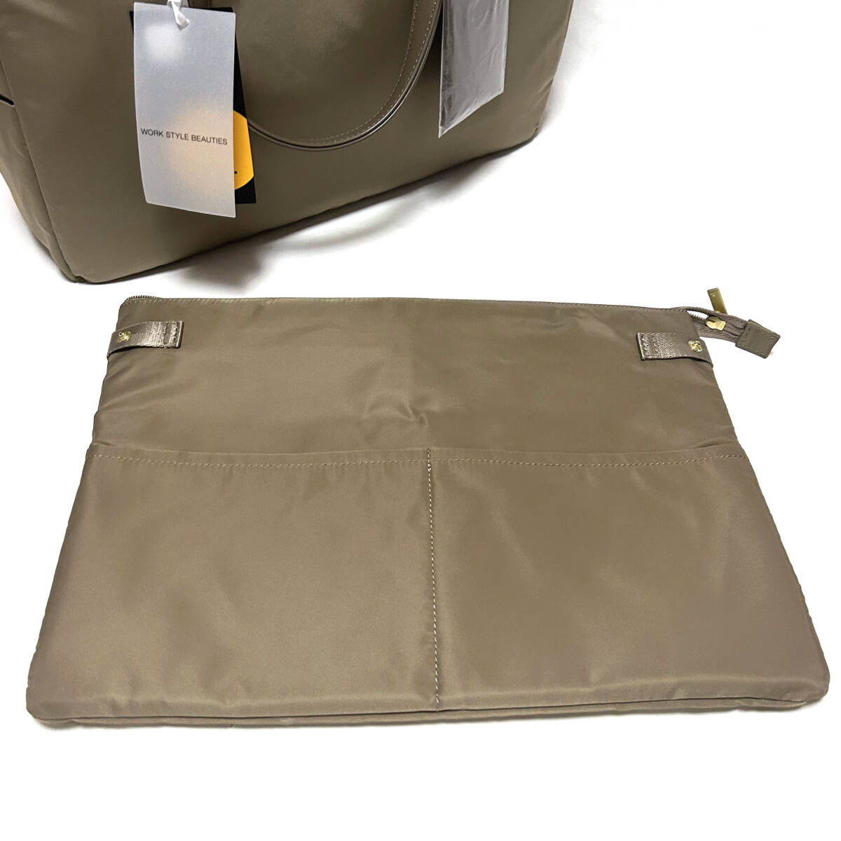 商品説明 | 【ブランド】 ace.GENE(エース ジーン) 【品名】 ジッピー トート 【品番】 17307-05 【カラー】 ベージュ 【サイズ】 W42×H31×D12 cm 【素材】 リサイクルナイロン100×200dnツイル/PU加工/PU合皮 【定価】 20,900円 【収納サイズ】 14.0インチノートPC収納可能 B4ファイル収納可能 【zippy tote/ジッピートート】軽快な印象のシンプル&スリムなトートバッグに機能性をプラス。 取り外し可能なノートPCケースは周辺機器なども持ち運びやすく、リモートワークにも対応できるアイテムです。 高まる環境意識にも対応し、本体生地と内装生地にはリサイクル素材を使用しています。 【機能的なポケット】:背面ポケットには抗菌・抗ウィルス加工を施した内装生地を採用。除菌グッズやハンカチ、財布などの収納に推奨です。 ポケットが豊富で、持ち物の定位置を決められます。 【取り外し可能なPCポケット】:バッグのメイン収納部にあるボタンで簡単に取り外し可能。別のカバンに変えたい時も、周辺機器もまとめて移し替えることができます。社内移動時にも。 【ボトルホルダ】:水筒や折りたたみ傘なども立てた状態で収納できるボトルポケットを搭載。 |