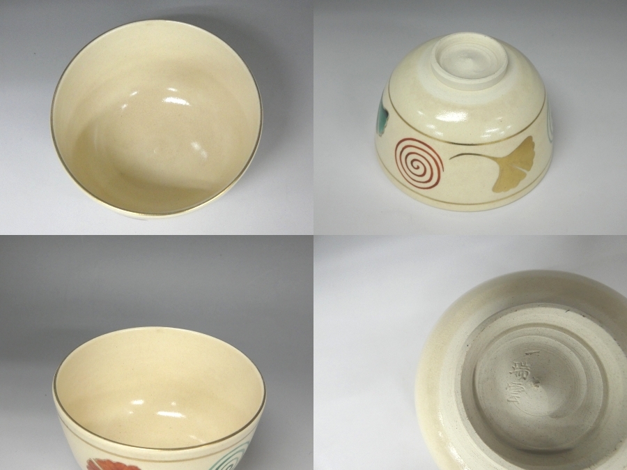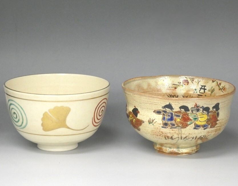 【茶道具名品】 茶碗2点セット<沖野和香 伊羅保 通りゃんせ/瑞雲造 イチョウ> 蔵出し品 茶道家収集品 状態良好 時代出物 |