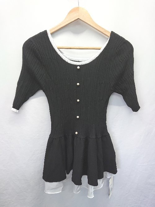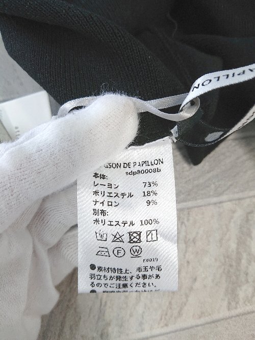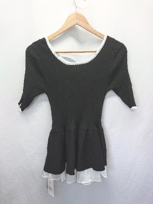 ◇ 未使用 Θ SAISON DE PAPILLON セゾンドパピヨン フリル 七分袖 チュニック サイズL ブラック系 レディース E
