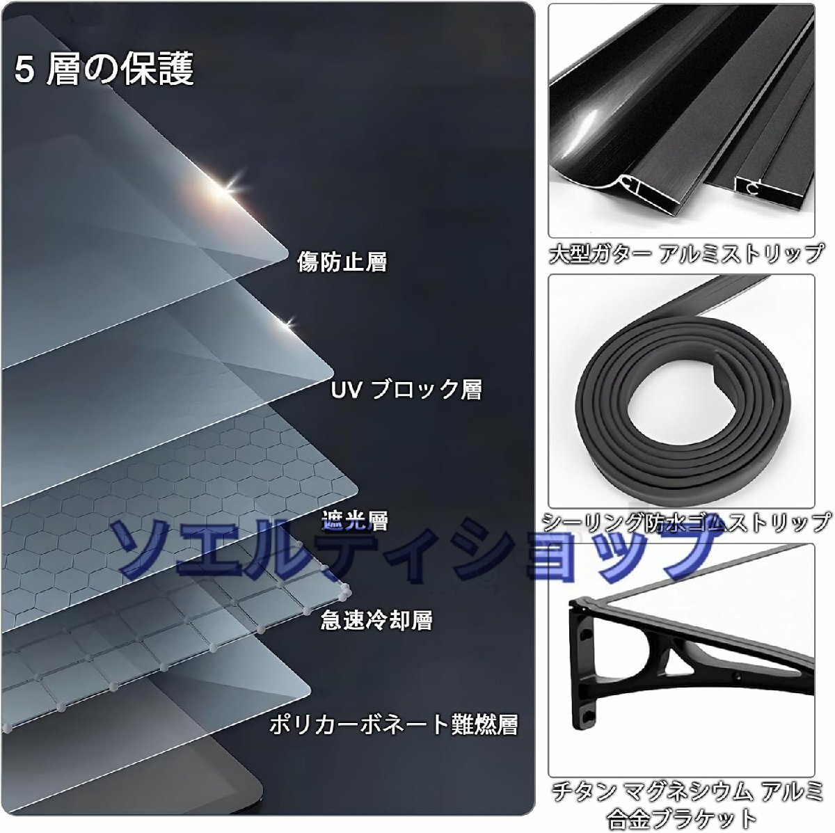 ●【高品質素材】オーニングはポリカーボネート板で作られており、耐衝撃性、断熱性、遮音性を効果的に向上させます。-40℃(-40)から120℃(248)までの温度変化に耐え、耐衝撃性はガラスの250~300倍です。同時に、中空PCボード内部で発生しやすい水蒸気の結露を効果的に回避します。