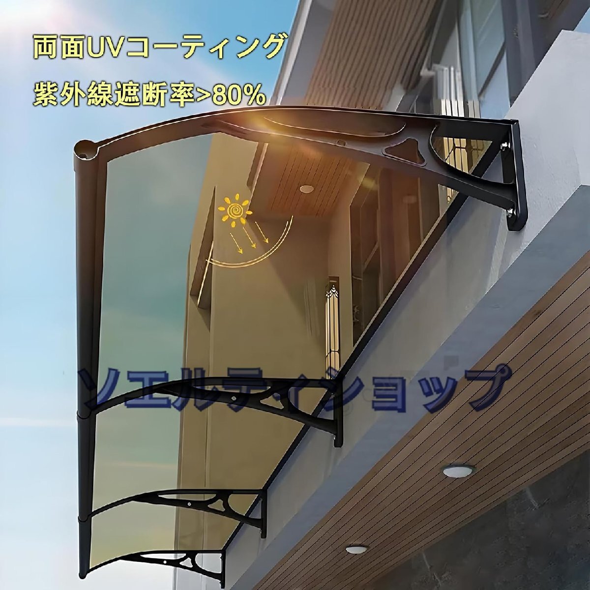 屋根庇 後付け ひさし 雨よけ,梅雨対策 住宅用 パティオ日除け 後付け ブラケット付き頑丈で耐久性 組み立てが簡単 (透明色 120x200cm)