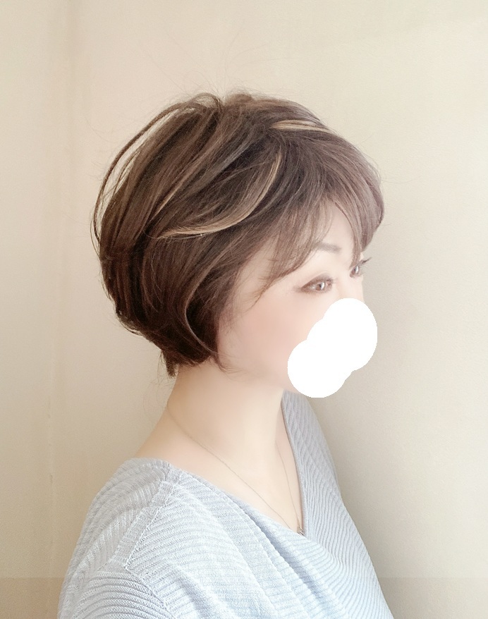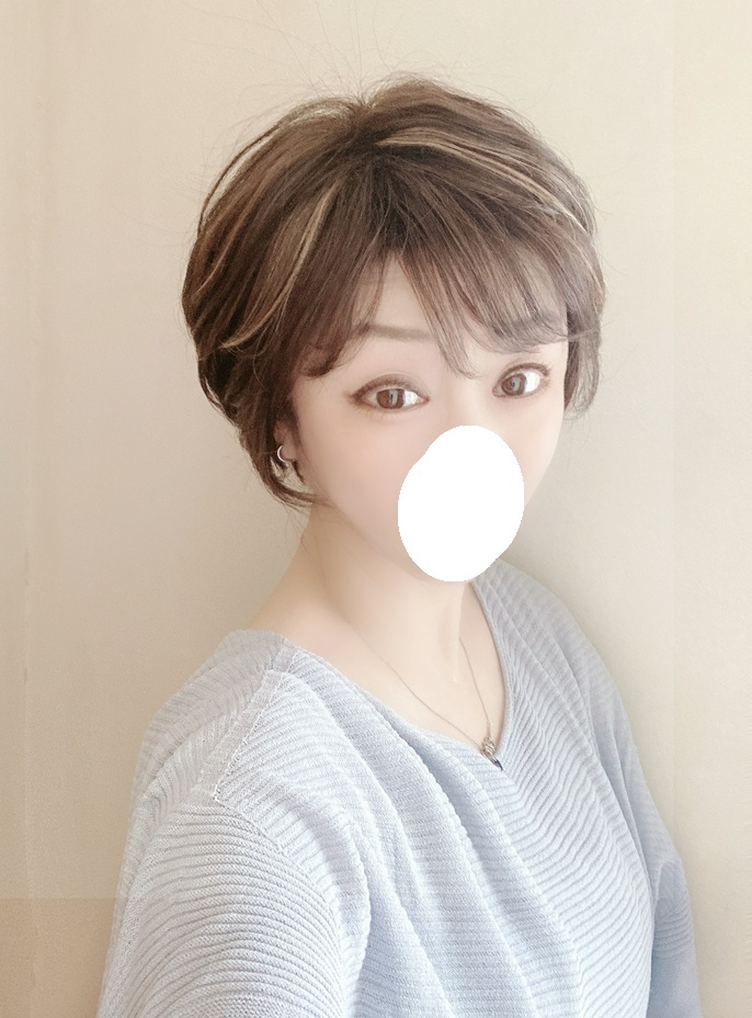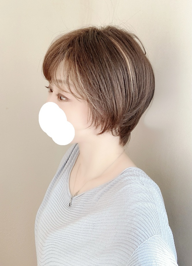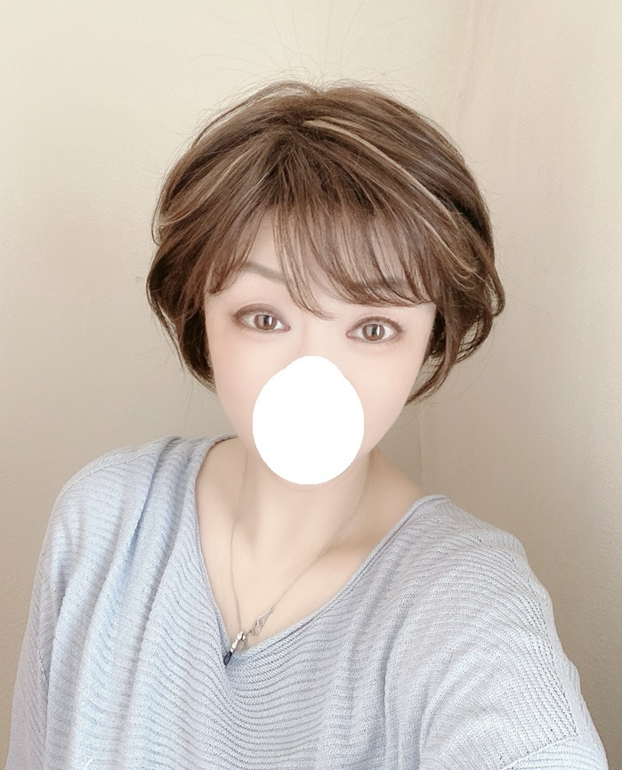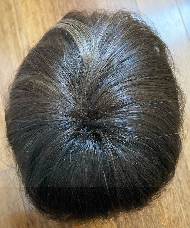 ■髪の長さ(全てキャップ際から):前髪約10.5cm、サイド(もみあげ)約11cm、ネープ(襟足)約5.5cm、トップ約19cm