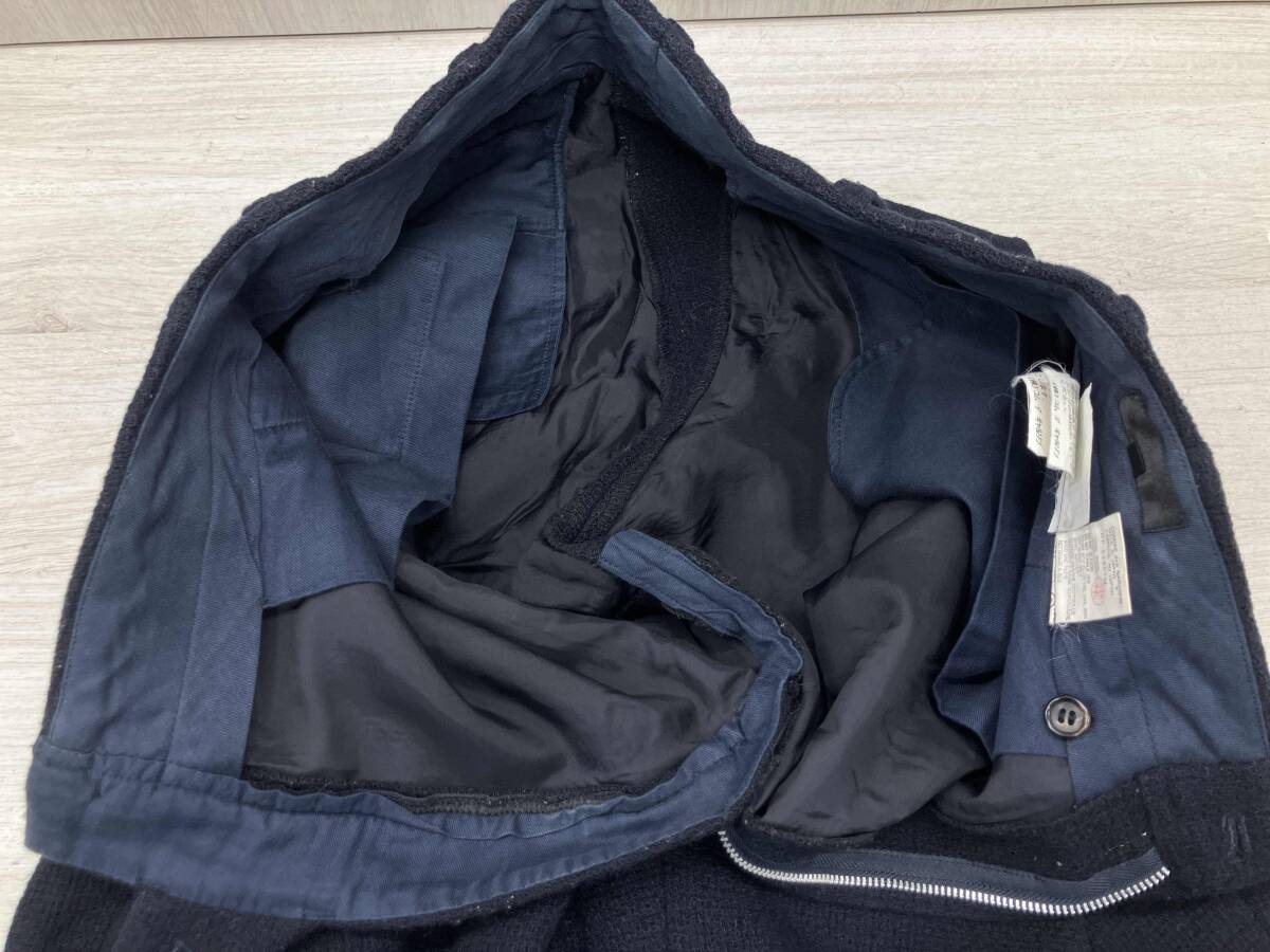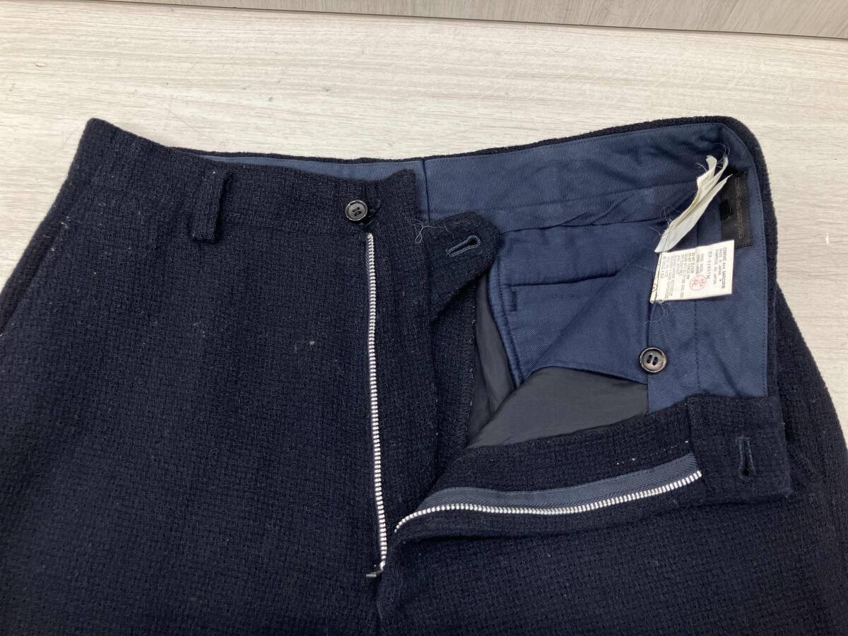 画像のものが全てです。 【ブランド名】COMME des GARCONS HOMME PLUS 【表記サイズ】 M 【平置きサイズ】 ウエスト:約37cm ヒップ:約 54cm 股上:約32cm 股下:約70cm 裾幅:約20cm サイズ表記(~cm位)は目安です。ブランドやデザインによって多少前後する場合がございます。予めご了承の上ご注文ください。 【カラー】ブラック 【状態説明】 全体的に使用感あり、全体的に毛玉あり、全体的に汚れあり ボタン取れかけ箇所あり |