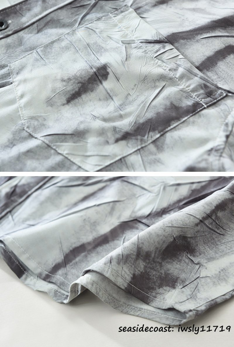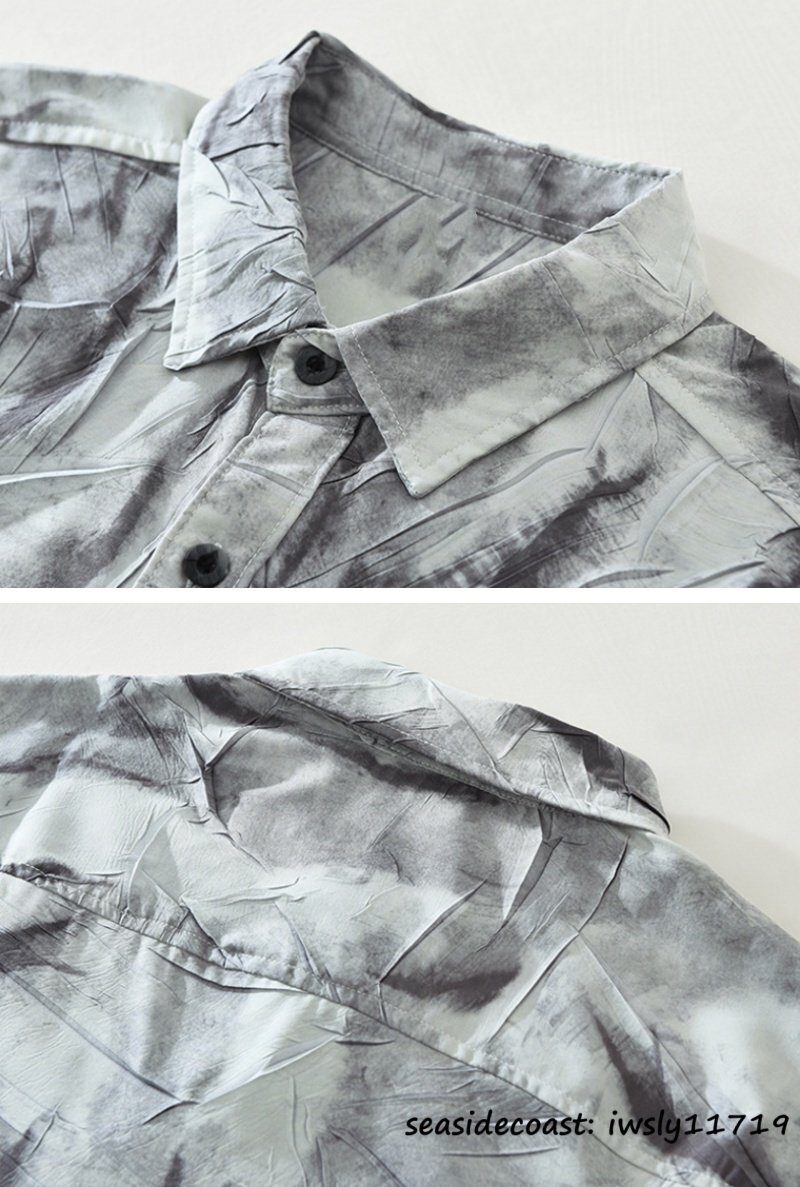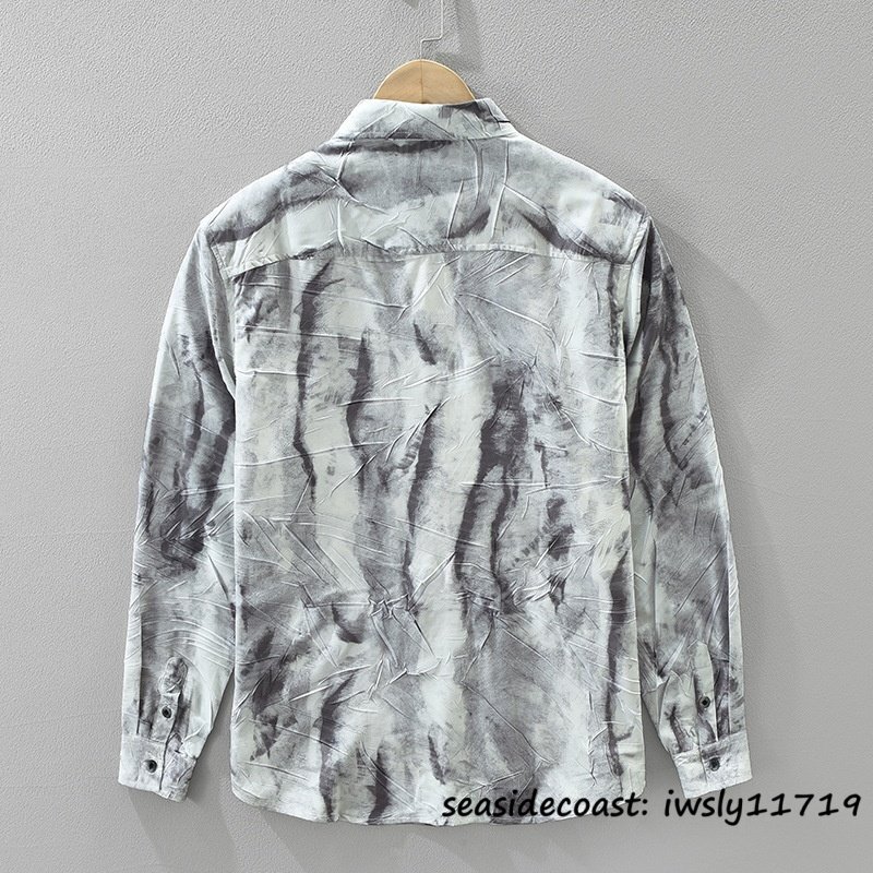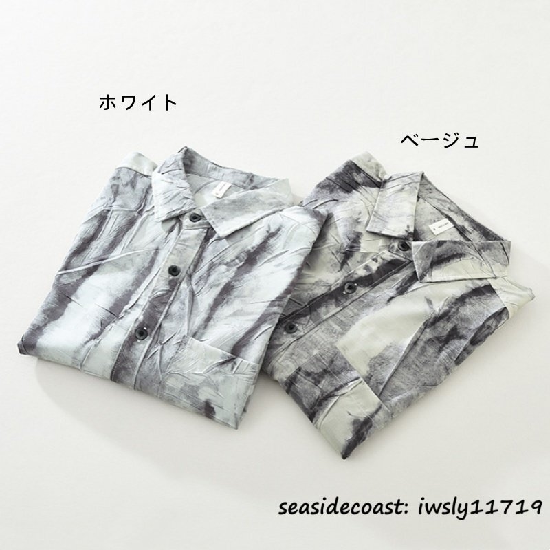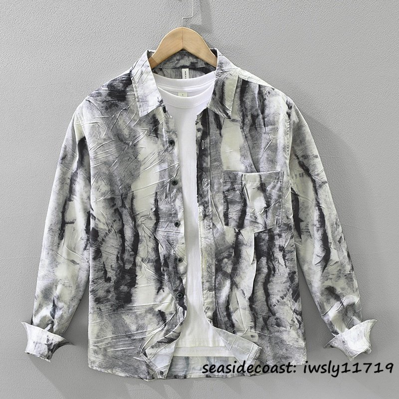 極美品★長袖シャツ 新品 メンズシャツ ハイセンス 春夏秋シャツ カジュアル 心地良し お洒落 藍染め 総柄 通勤 紳士トップス ベージュ L