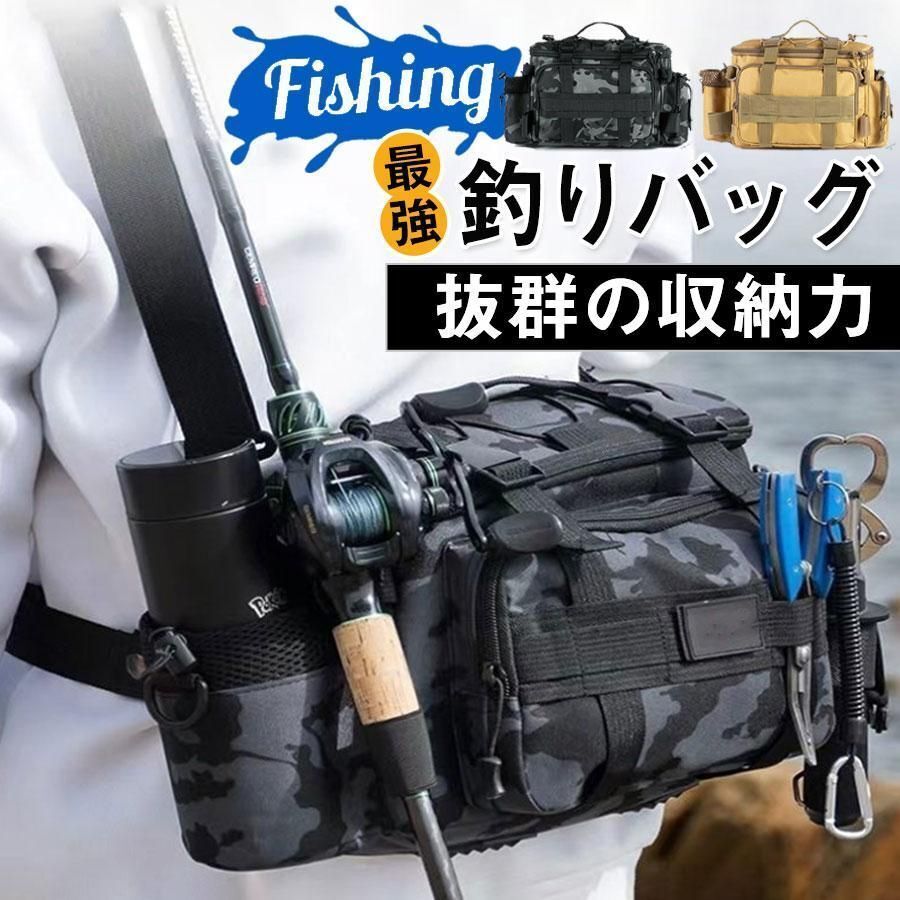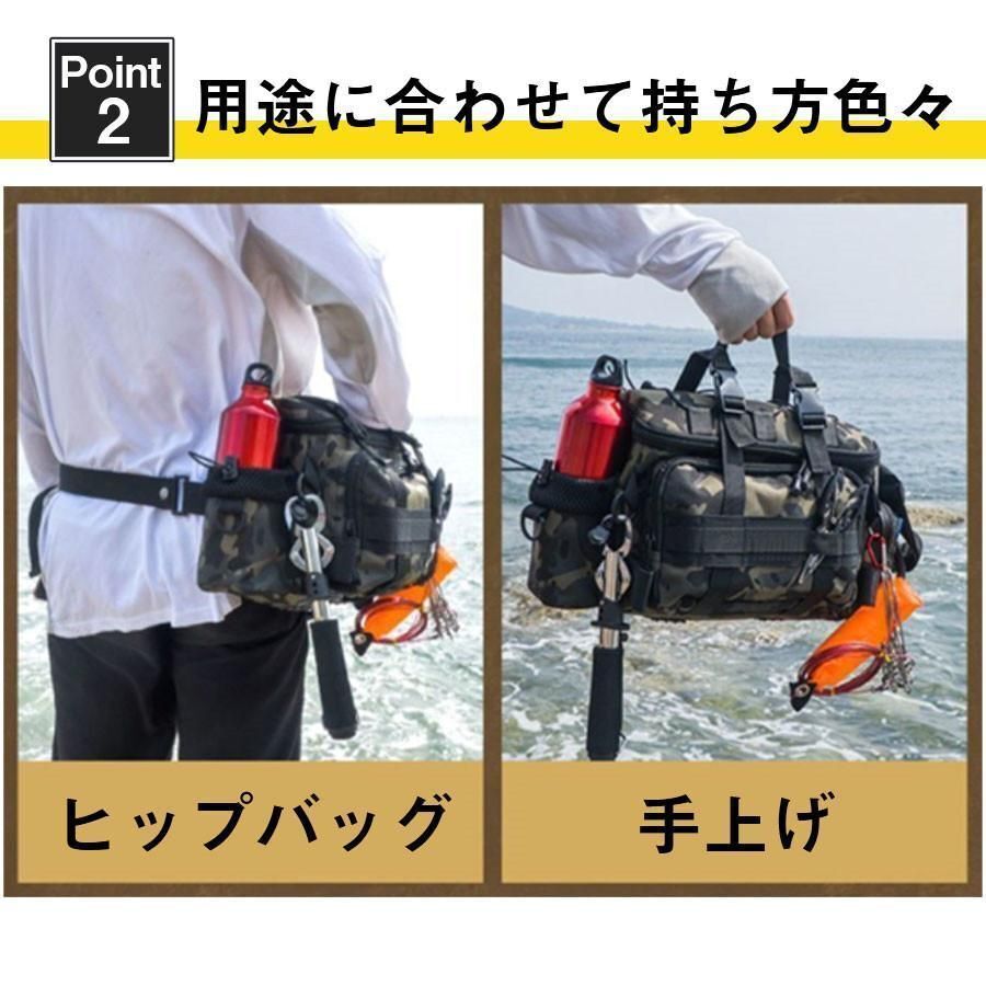 釣りバッグ フィッシングバッグ ロッドホルダー 大容量 ウエスト ヒップバッグ 防水 タックル 計量 ショルダー 迷彩 鞄 カバン 釣具