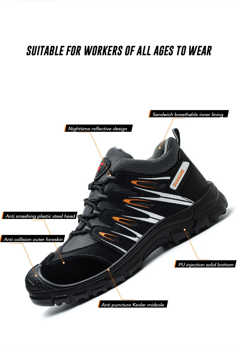 安全靴作業靴セーフティシューズ 通気性軽量 スニーカータイプ ローカット樹脂先芯入り釘踏み抜き防止厚底作業用サイズ:26.5cm 灰