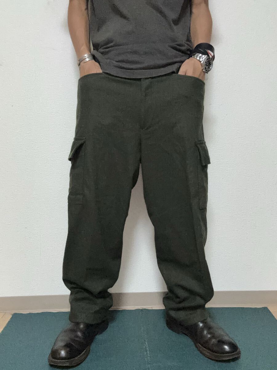 ブランドらしい大人なフランネルツイル系の生地感ですがルーズ目なシルエットにカーゴポケットと色味が無骨でヤンチャな空気感もある一枚です。