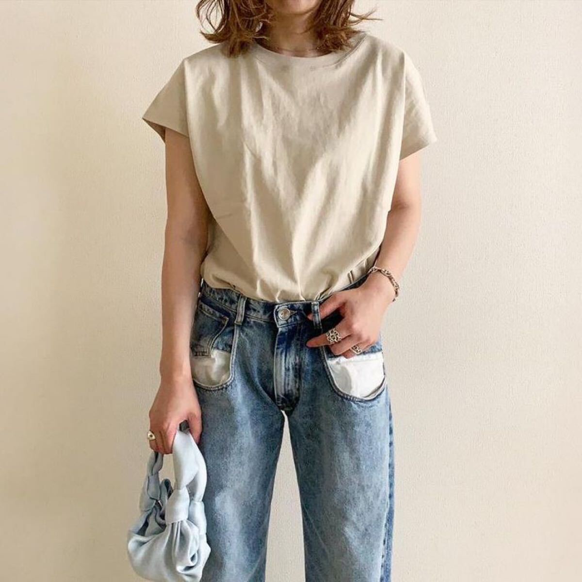 サラッとした風合いとフレンチスリーブで着心地は爽やか。