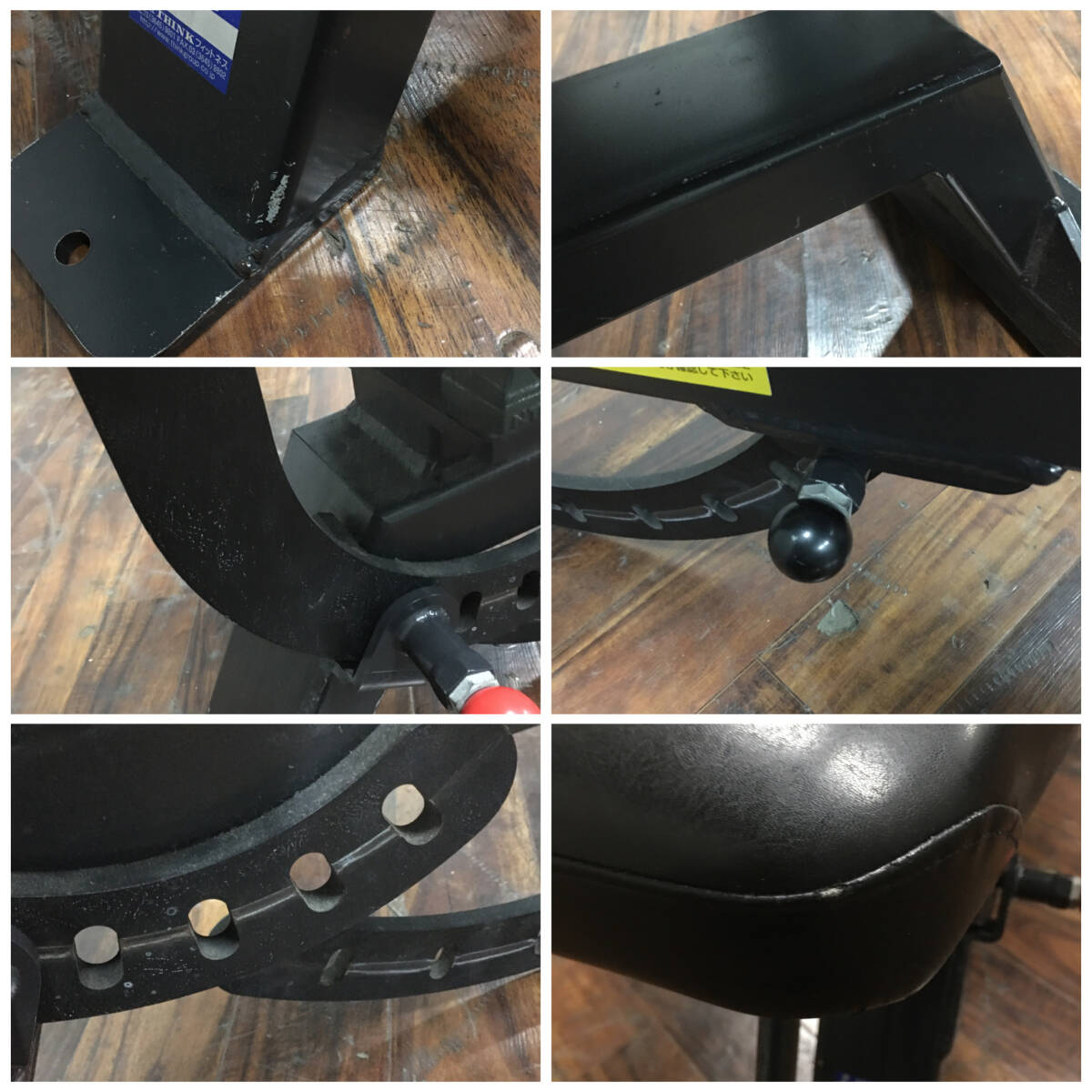 中古品になります。 ※こちらの商品は同様の在庫が複数あるため 画像1〜8枚目はサンプル画像になります。 ※9~10枚目は実際の商品の状態画像になります。 使用や経年により、全体的に 傷や汚れ等ございます。 フレーム部分に傷やサビ、剥がれなどございます。 (画像9,10参照) シート部分に破れございます。 (画像9,10参照) シートパッドは4段階、 バックパッドは0°から90°の7段階で調整可能になります。 付属品は画像に写っている物が全てになります。 画像をよくご確認の上、ご入札お願いいたします。 現状有姿でのお渡しとし、お引き渡し後は ノークレームでお取引下さい。 その他細かな詳細は画像参照でお願いします。 扱っている商品は骨董品や中古品を扱っております。 極端に目立つ欠損は説明文・画像にて表記致しますが、 多少スレ・キズ・汚れなどがある品としてご理解下さい。 発送・自社便・手渡しに関しまして、 下記の『※発送に関しまして』をご参照ください。 |