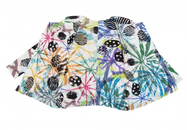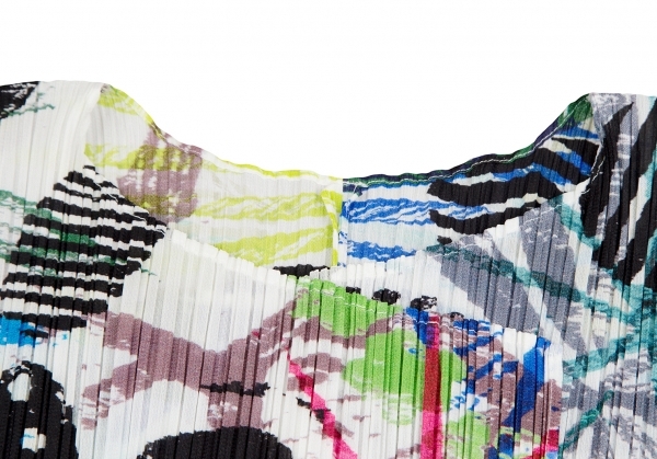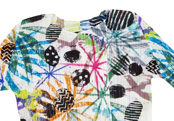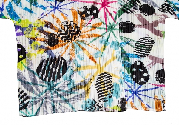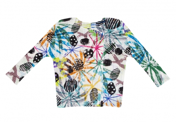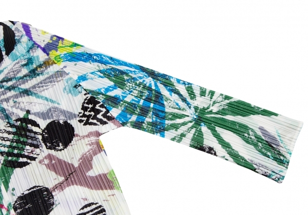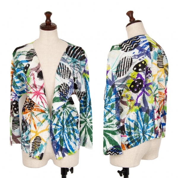 プリーツプリーズPLEATS PLEASE グラフィックプリントボタンレスカーディガン 白マルチ3 |