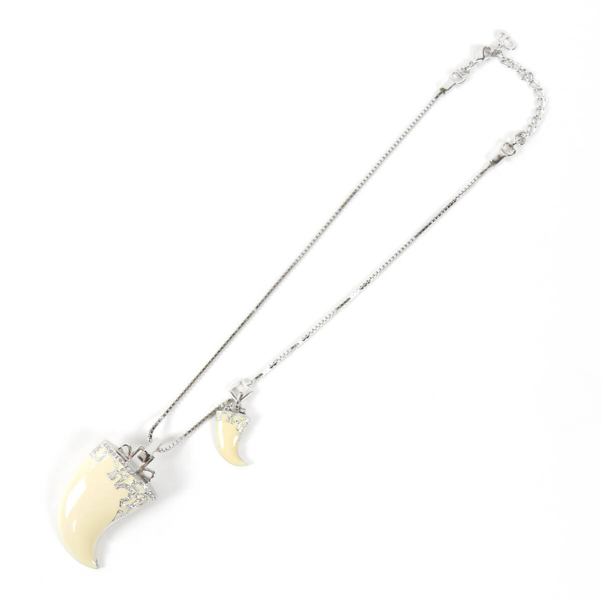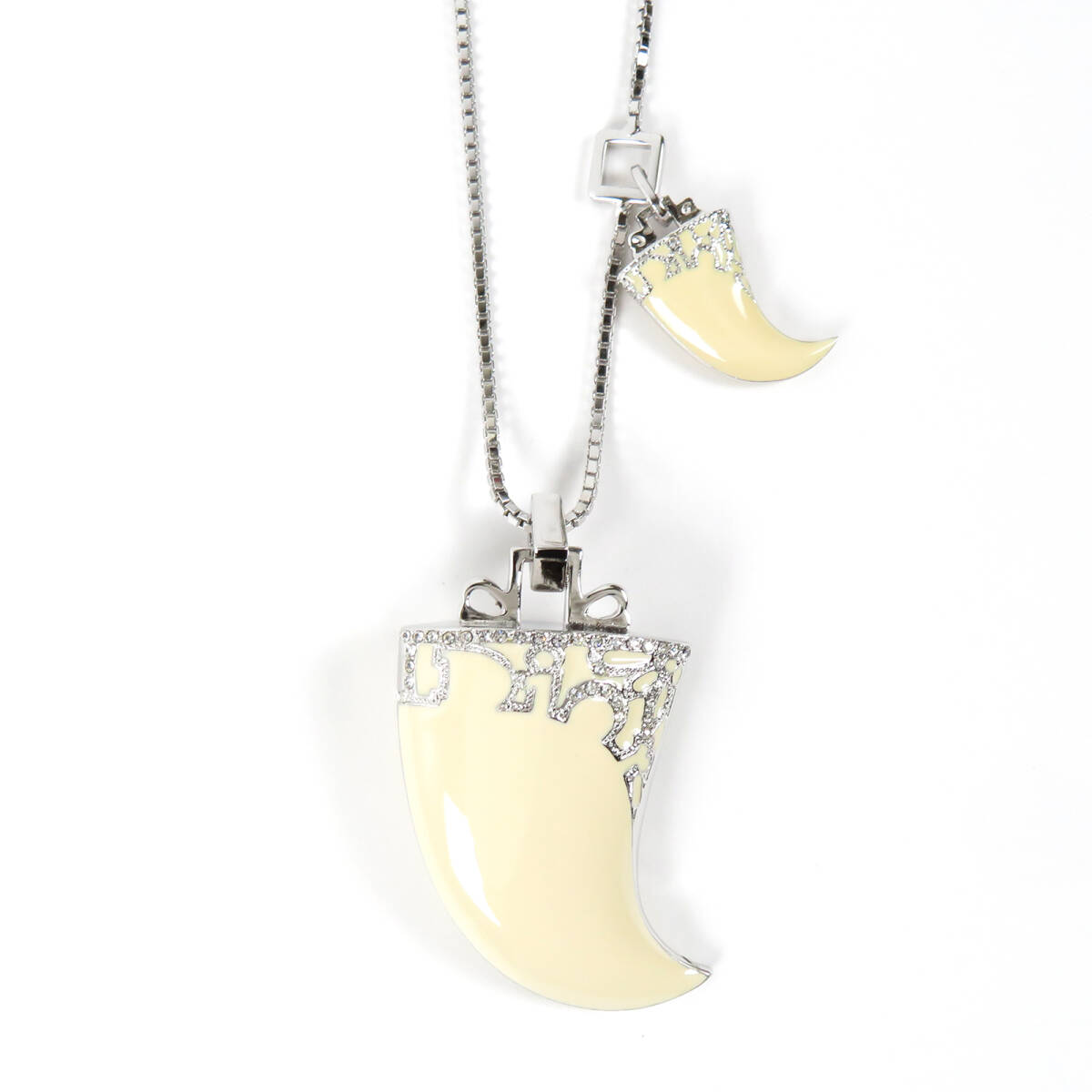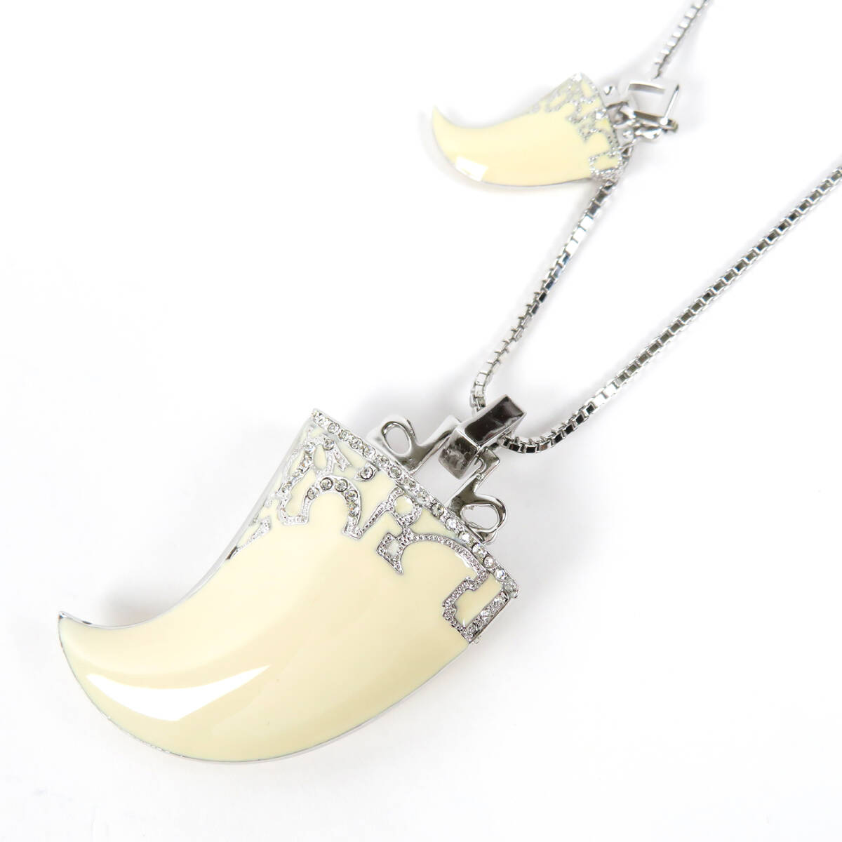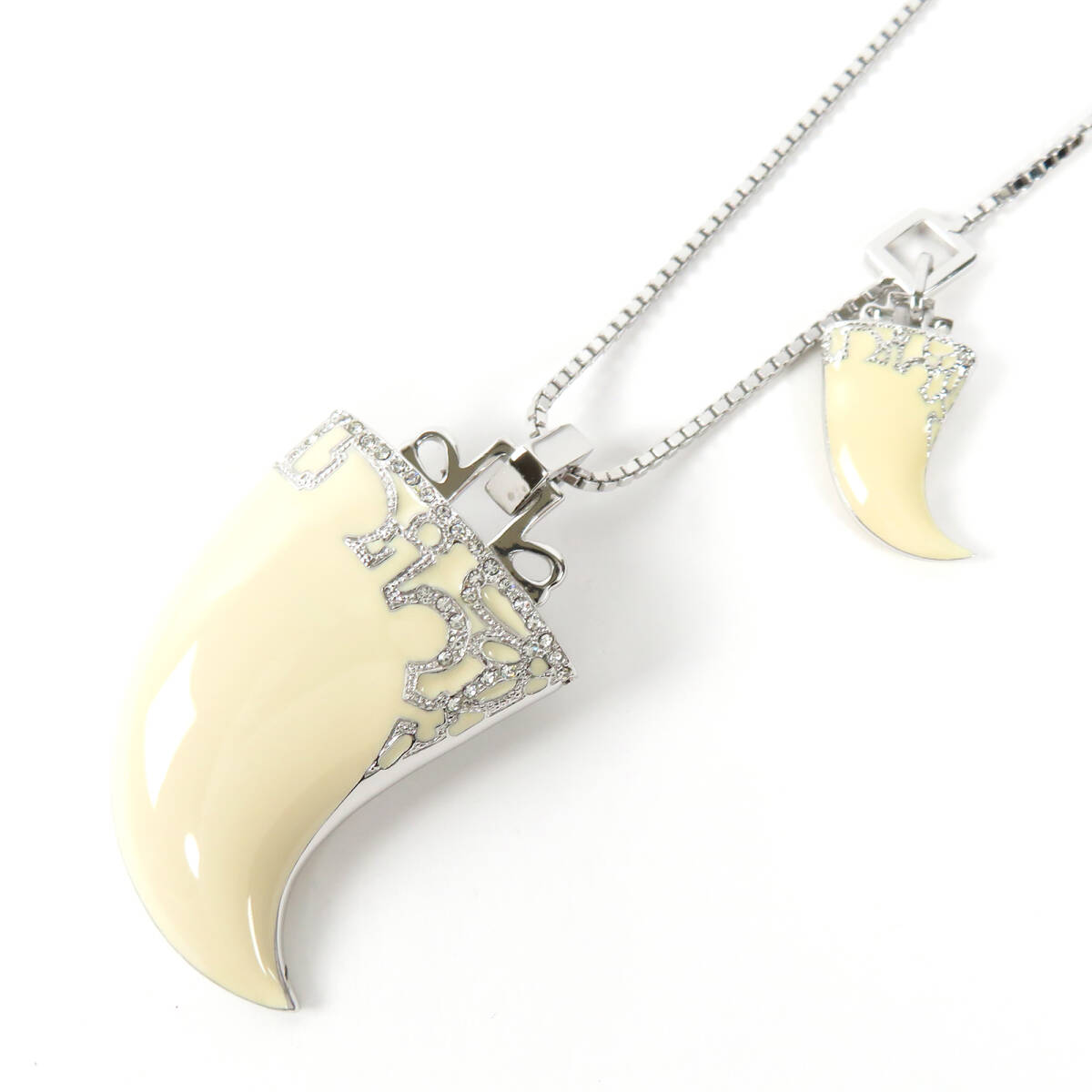 Christian Dior クリスチャンディオール 牙モチーフ ビッグサイズ ネックレス ラインストーン シルバーカラー アイボリー ベネチアンチェーン |