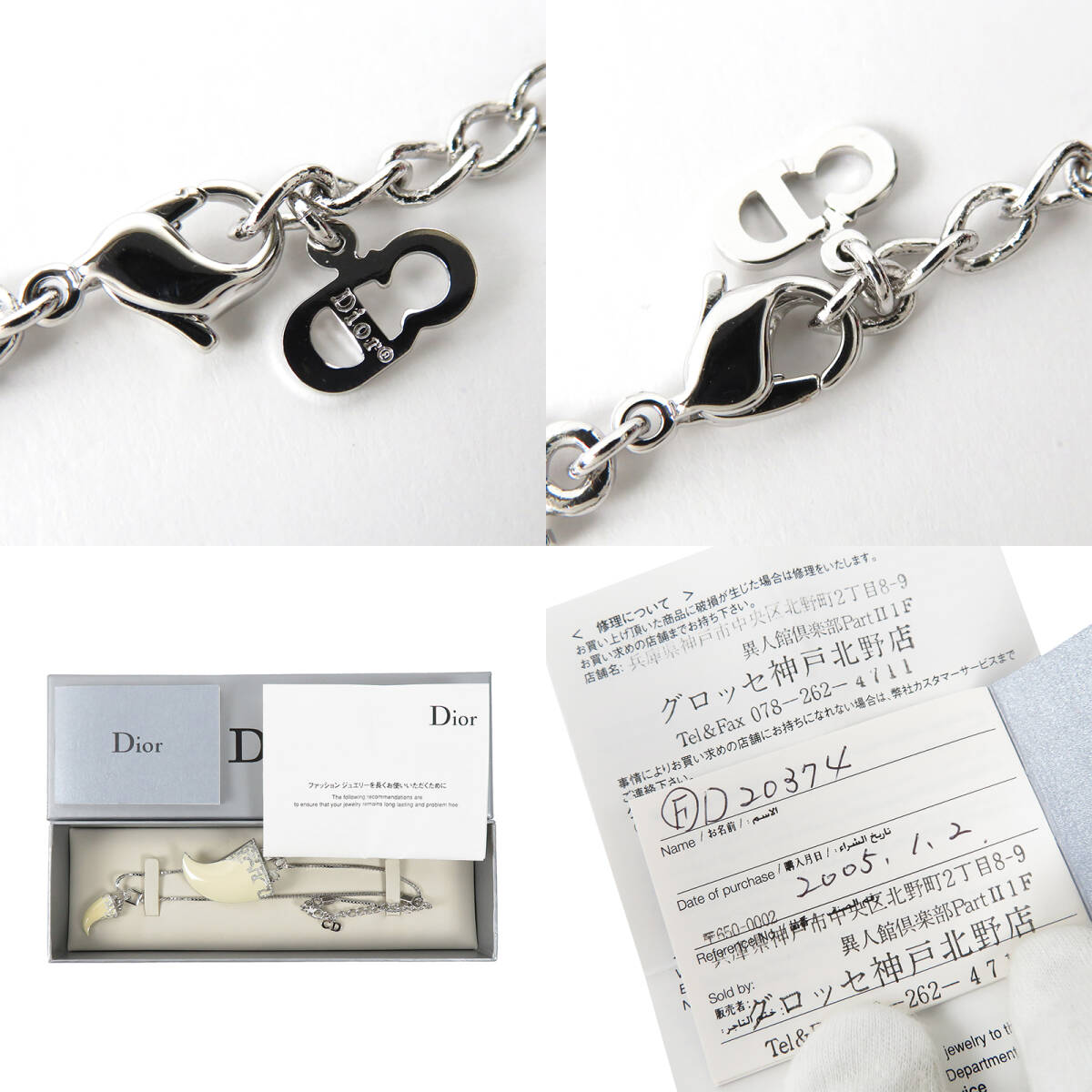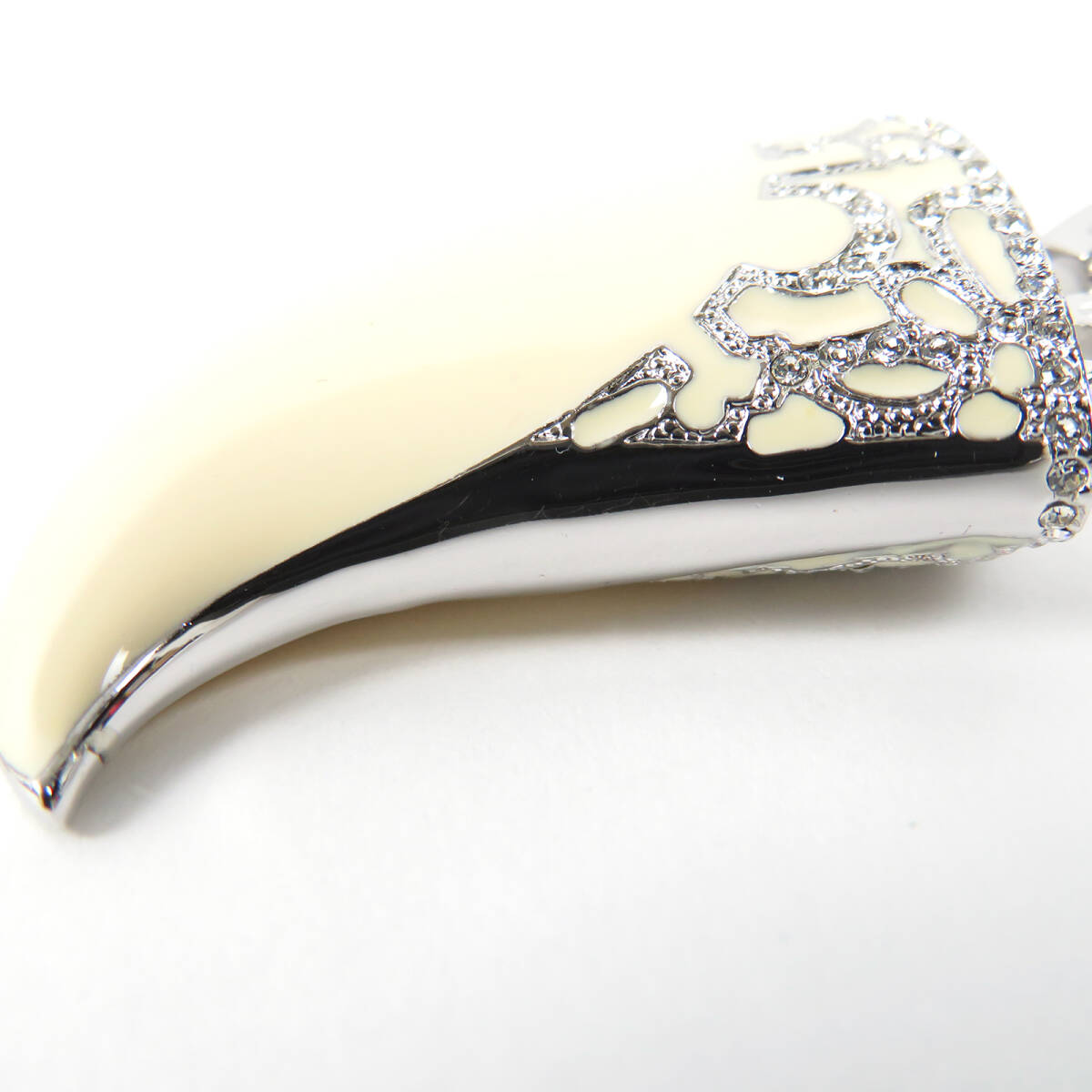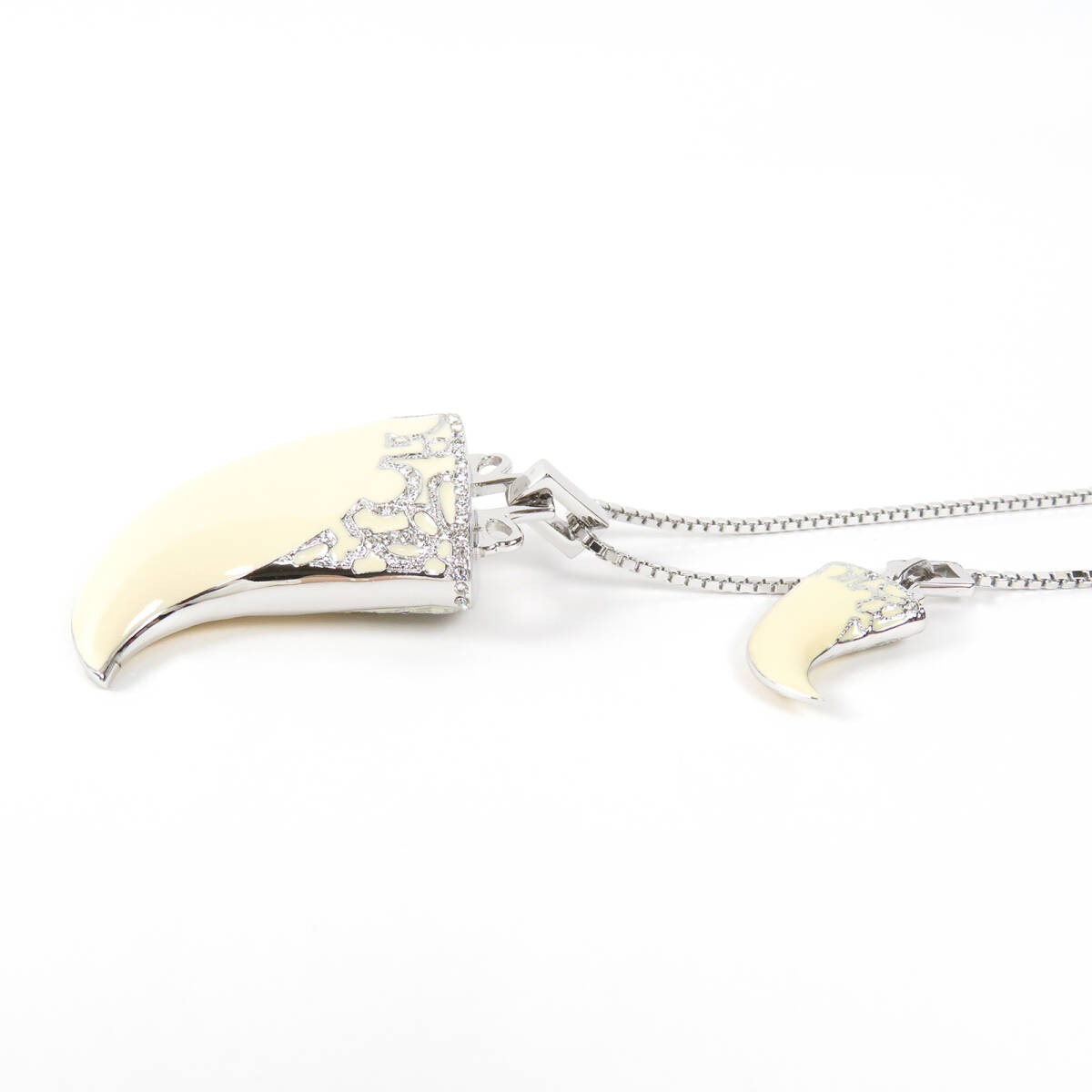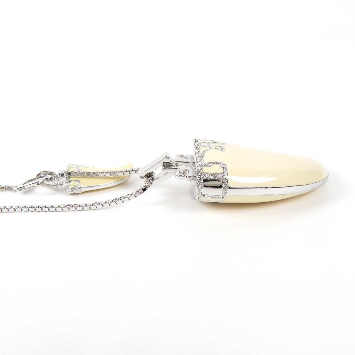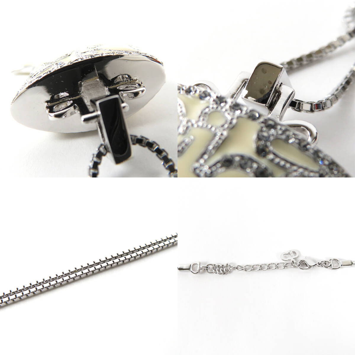 Christian Dior クリスチャンディオール 牙モチーフ ビッグサイズ ネックレス ラインストーン シルバーカラー アイボリー ベネチアンチェーン |