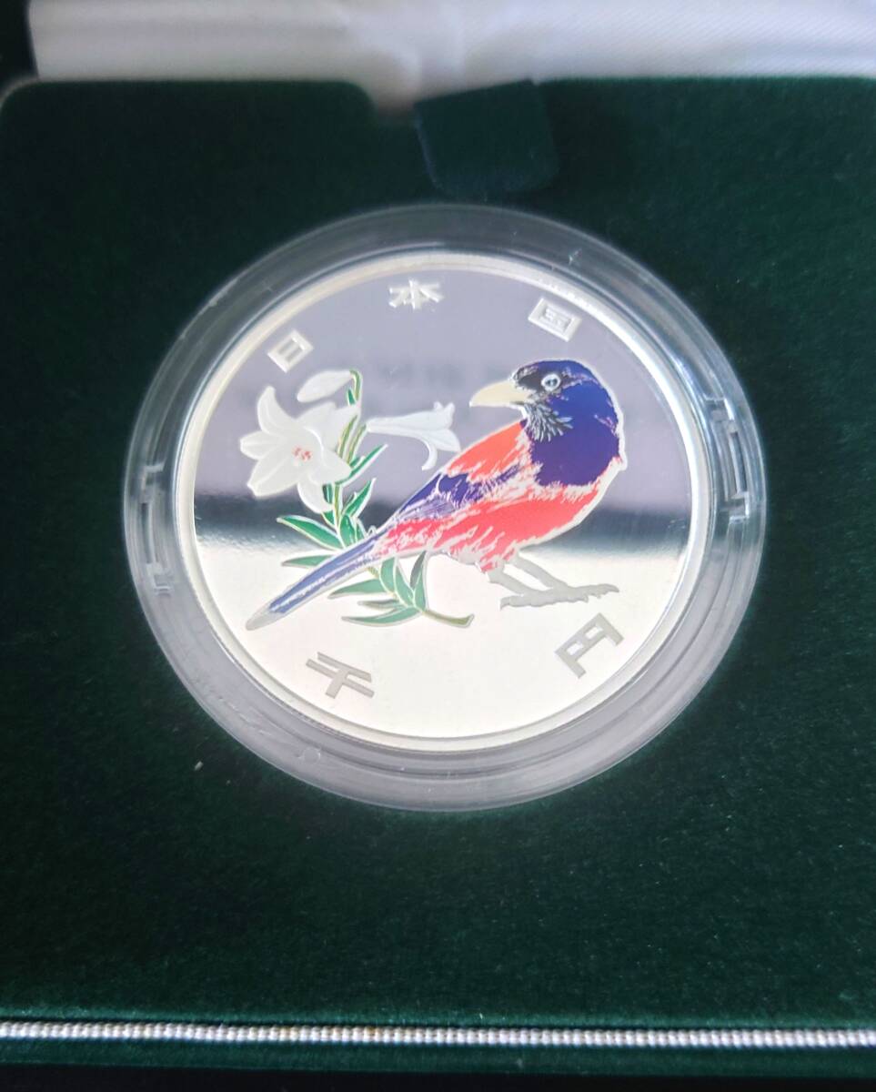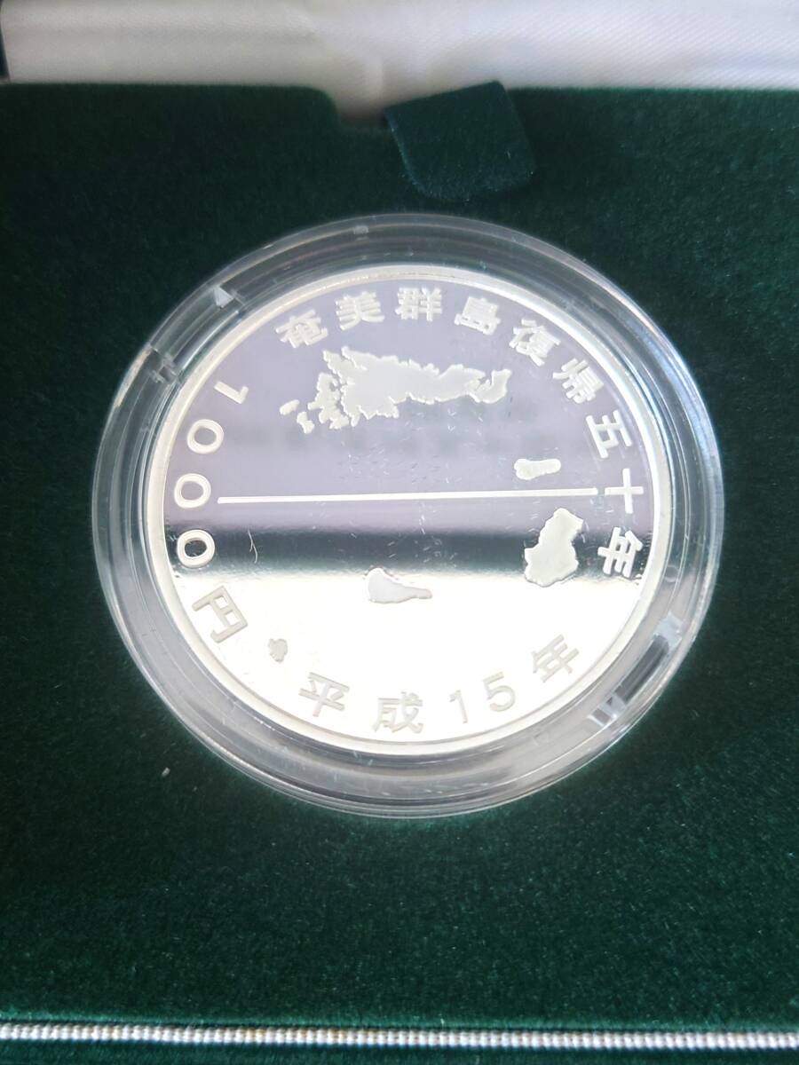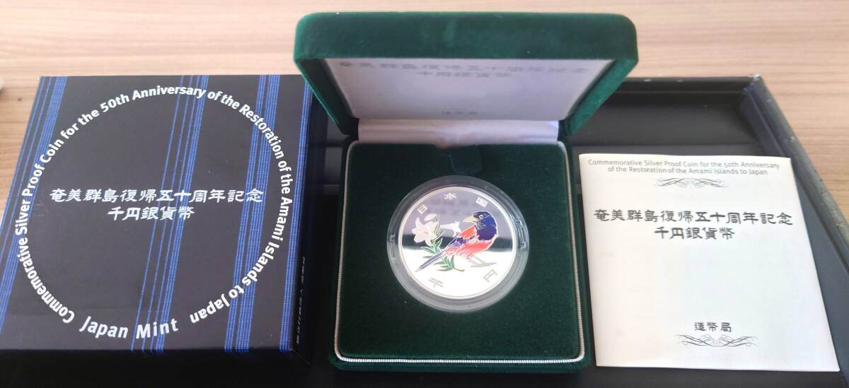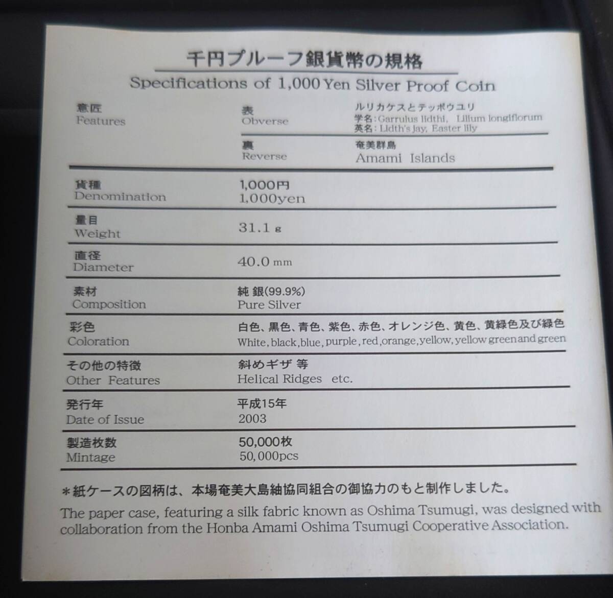 ・平成15年 奄美群島復帰 50周年 記念 千円銀貨 プルーフ貨幣 31.1g 銀貨 純銀 1000円銀貨 箱付 ルリカケスとテッポウユリ 奄美群島
