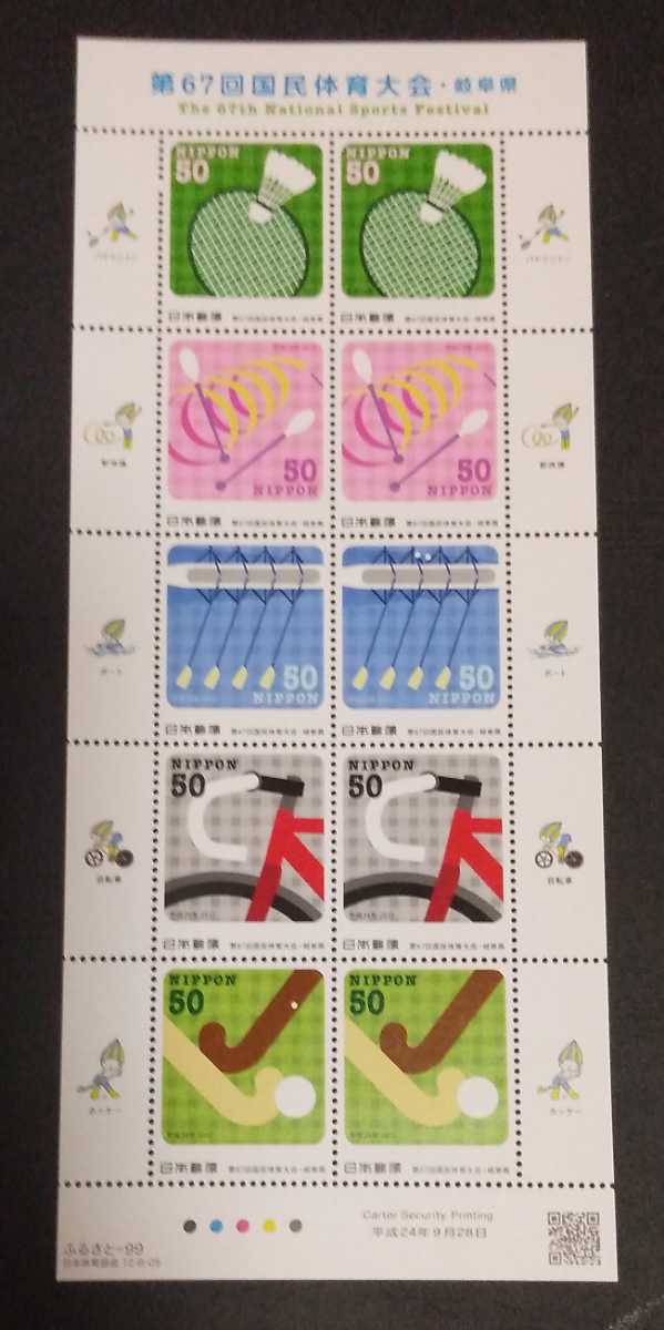 2012年・ふるさと切手-第67回国民体育大会シート(岐阜)解説書付