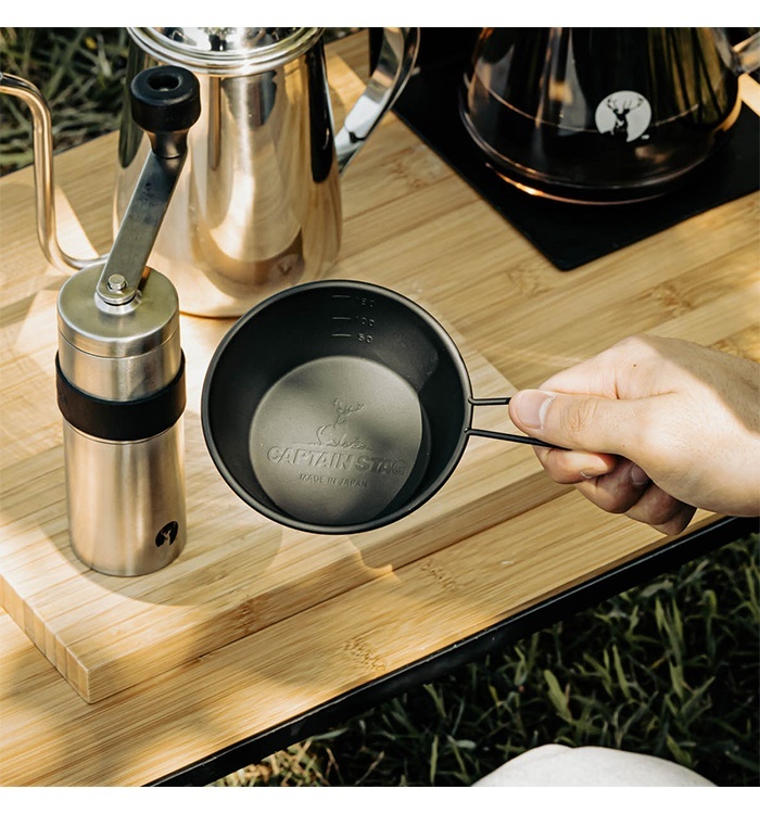 オキツモ社の耐熱塗料を使用したシェラカップ。 フィールドでのアクティブシーンに応える、シンプル、ベーシック機能をコンセプトにしたシェラカップです。 優れた耐久性のある18-8ステンレスを採用。広口で食器として使えます。計量に便利な目盛付。 積み重ねができて、すっきり収納できます。 金物の町、燕三条で生産しています。 |