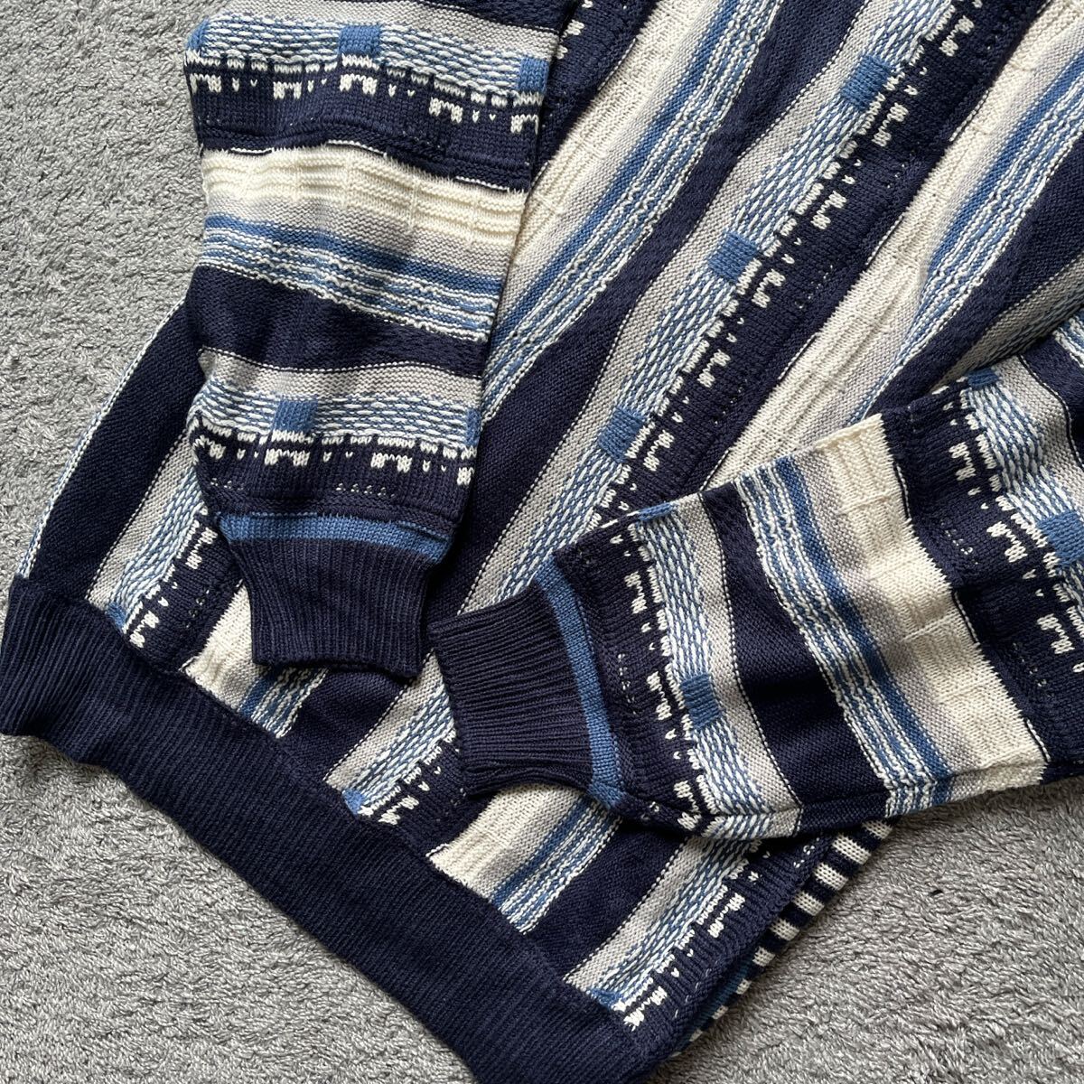 紺色系グレー系ジャガードニット長袖です。 未使用ですがタグはついていません。 メーカーの意向により品質ネームの一部が切り取られています。 自宅保存なので細かい事を気になさる方はご入札を避けて下さいね♪ サイズはFサイズです。 平置きでバスト59センチ 着丈72センチ 素人なので多少の差はご了承ください。 品質はアクリル100%です。 実際のお色と画像は光の具合により多少異なる場合があります。 48時間以内にご連絡いただける方、 お取り置きを含めてもご入金を 簡単決済期限以内にしていただける方のご入札をお願いいたします。 | |||