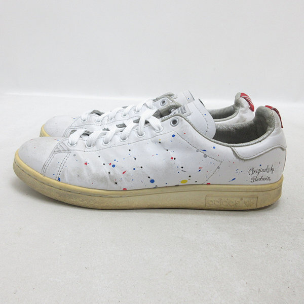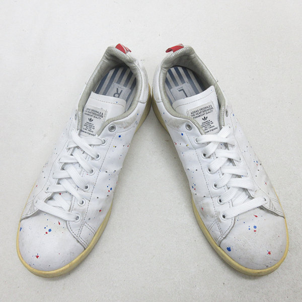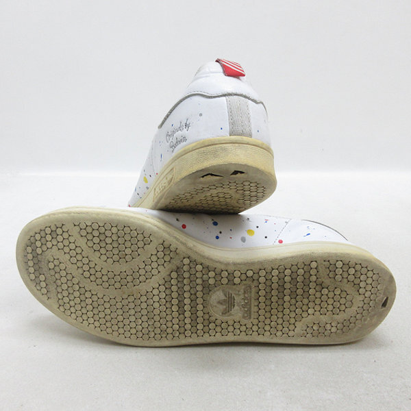 ホワイトレザーに色彩豊かなペンキのしぶきをプラスしたお洒落な一足です。
