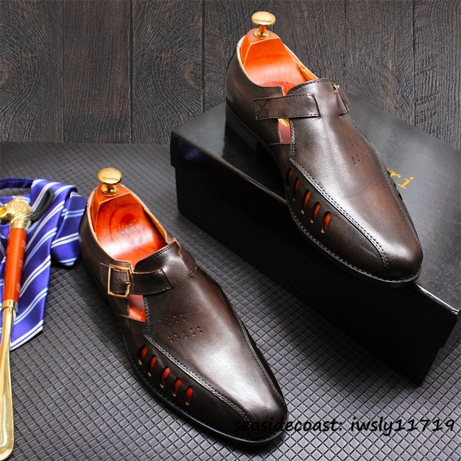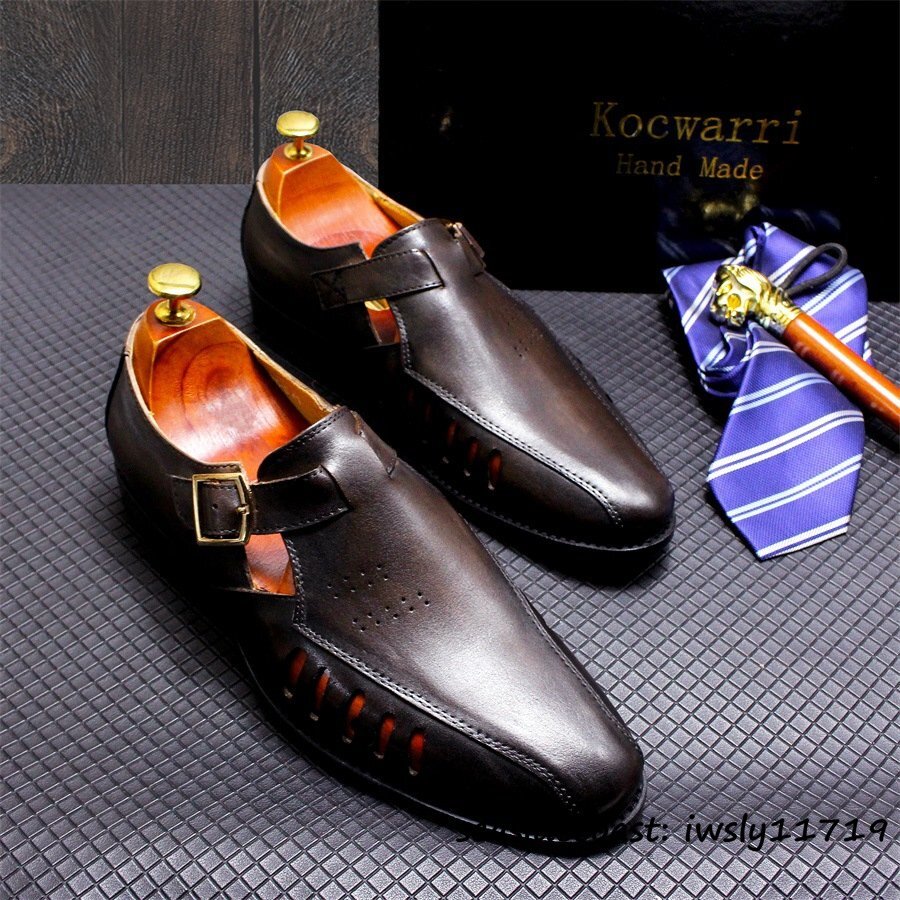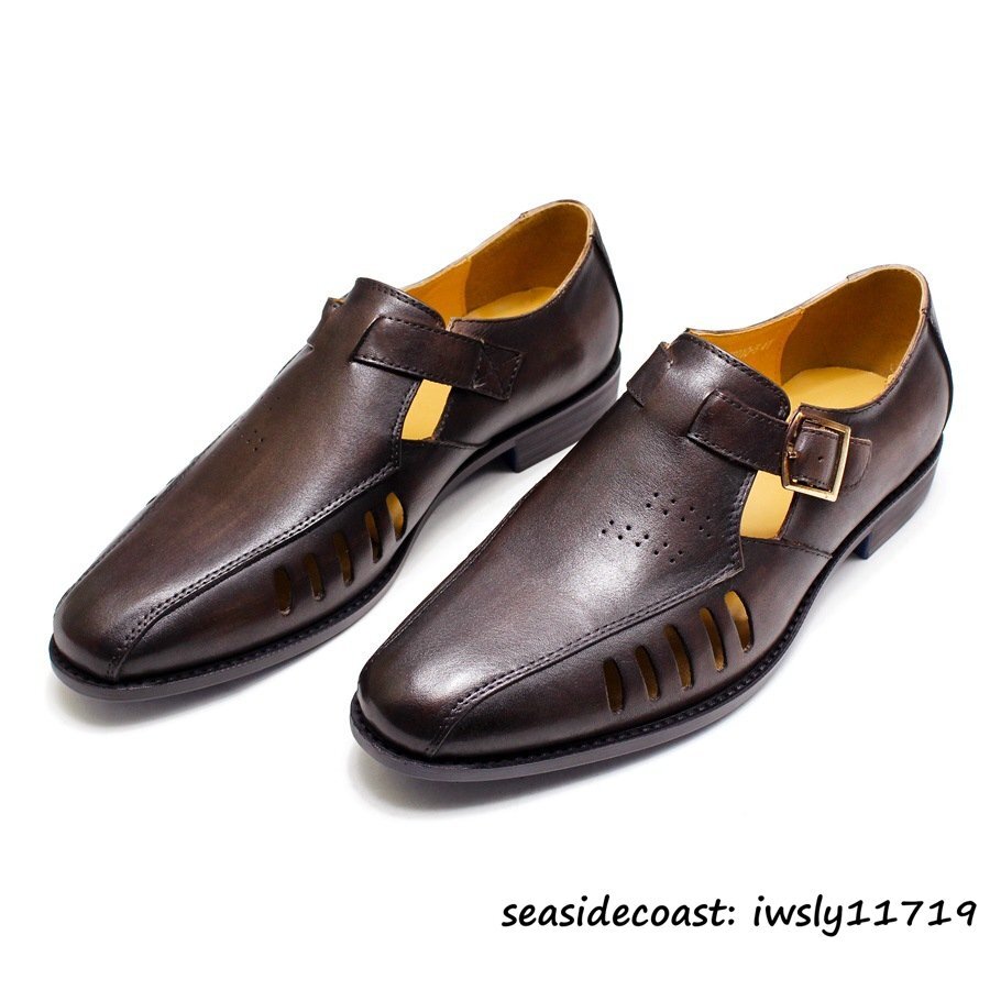 超希少◆夏新品 サンダル 本革 通気性 メッシュ 職人手作り 彫り レザーシューズ メンズ 高級牛革 ビジネスシューズ 革靴 珈琲色 24.5cm