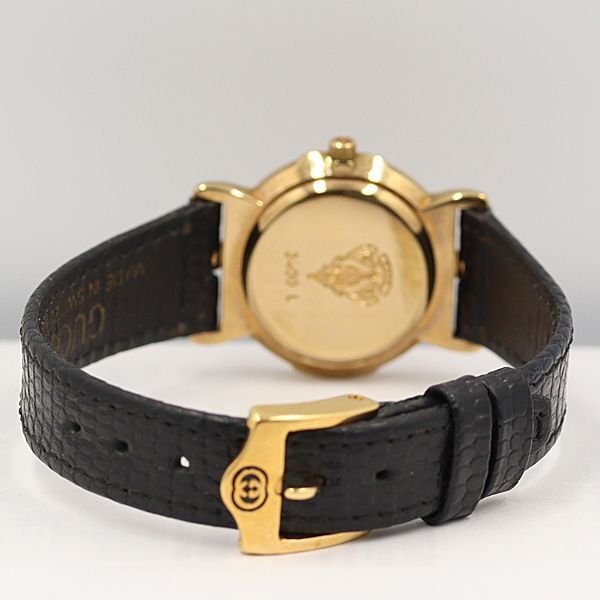 デッドストック級 稼働 美品 箱付 グッチ 3400L QZ アイボリー文字盤 レディース腕時計 OGH 9476ABC0336000