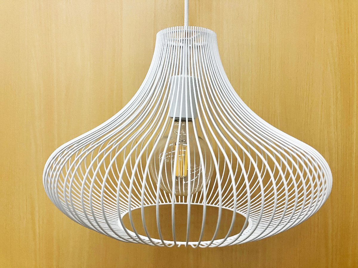 ■東京・荒川の工場から生まれた照明ブランド「aproz」。その中でも、細いロット棒を90本、職人が一本一本丁寧に手で曲げ、溶接して仕上げた逸品が「ネブラスカ」です。 日本の職人技が息づくこの照明は、繊細な造形美とともに、灯りがつくり出す豊かな陰影をお楽しみいただけます。 新品定価:¥30,800 (税込) ■色/ホワイト ■サイズ/W380 × D380 × H270mm 引っ掛けシーリングから照明本体の下端までの寸法:約1080mm ■状態/全体的に細かいすれ傷はございますが、目立つ大きなダメージはありません。 雰囲気を損ねるダメージはなく、まだまだ気持ちよくお使い頂けます。 中古品ということをご理解の上、ご入札お願いします |