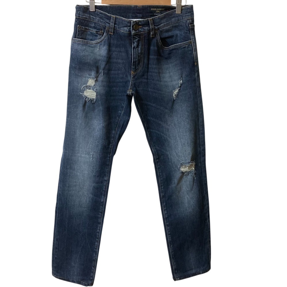 良品 DOLCE&GABBANA ドルチェ&ガッバーナ CLASSIC ストレッチ ダメージ加工 デニムパンツ ジーンズ 48 インディゴ