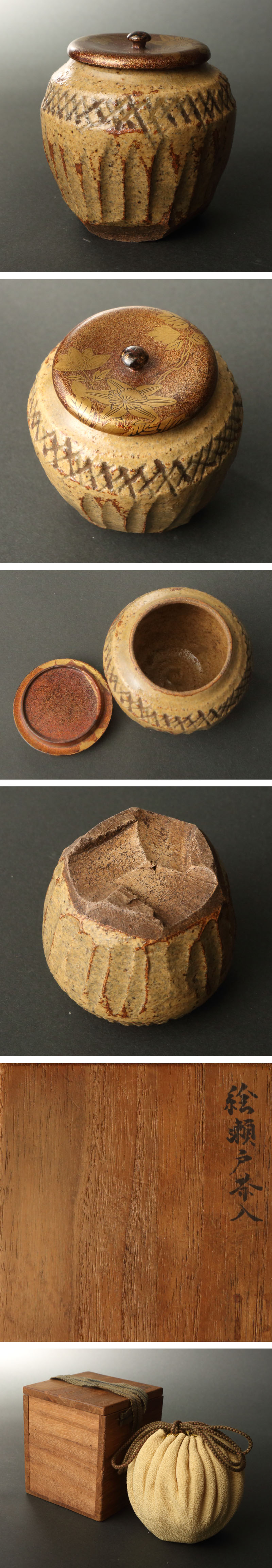 委託HK◇時代 絵瀬戸茶器 ※仕覆添え(茶道具 陶磁器 陶芸 瀬戸焼 古瀬戸 抹茶 濃茶 茶器 茶入 茶事 茶席 茶の湯 表千家 裏千家 )