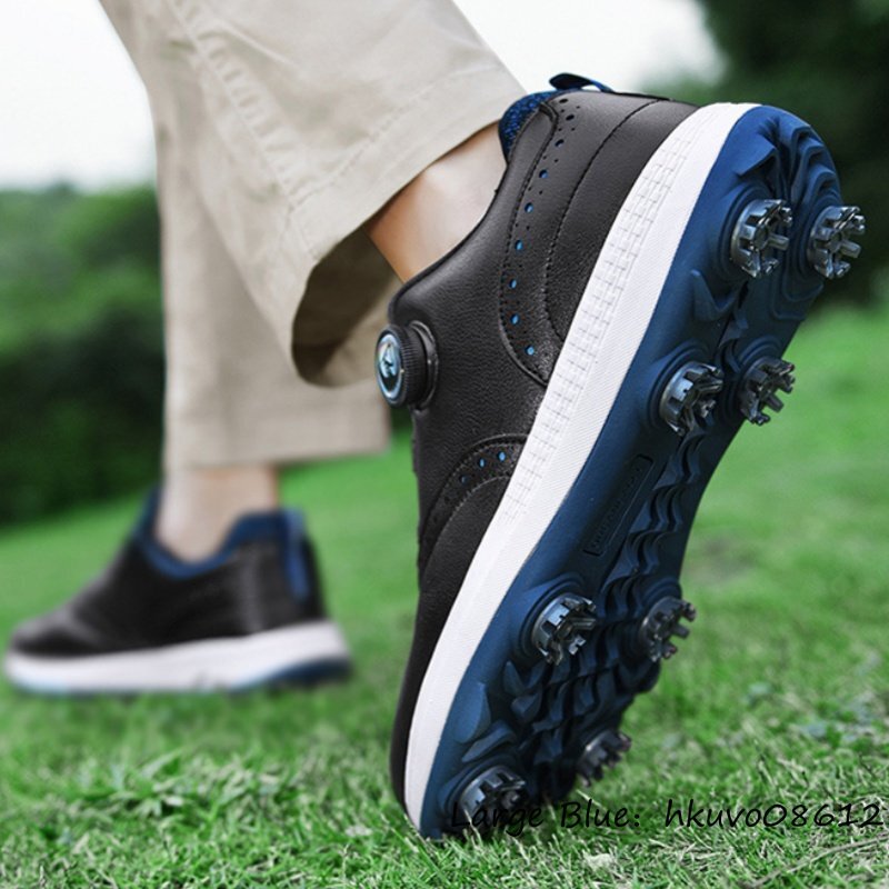 高級品■ゴルフシューズ 新品 スポーツシューズ 運動靴 メンズ 幅広 強いグリップ 紳士 スニーカー フィット感 防滑 耐磨 撥水 黒系 26.5cm