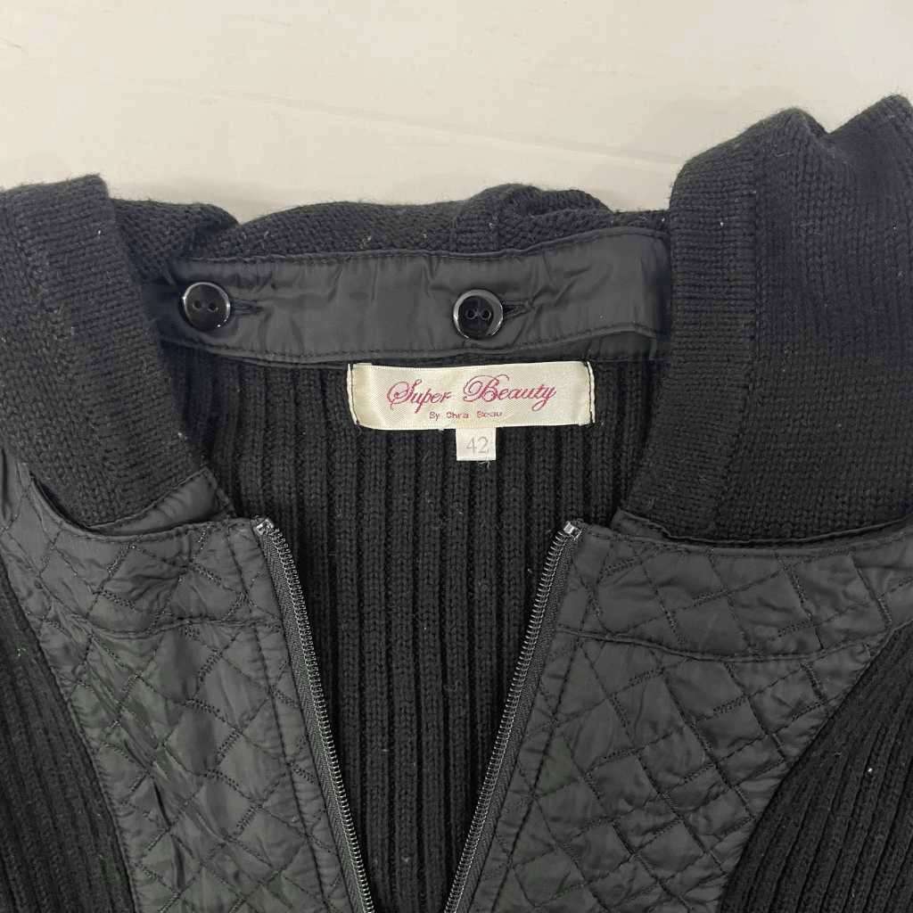 スーパービューティー super beauty 中綿ジャケット ニットジャケット ドッキング 42 黒 ブラック ■YHS3 レディース