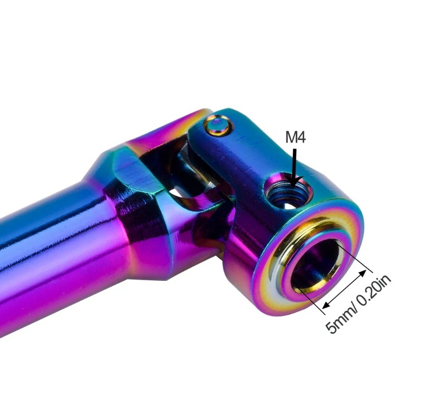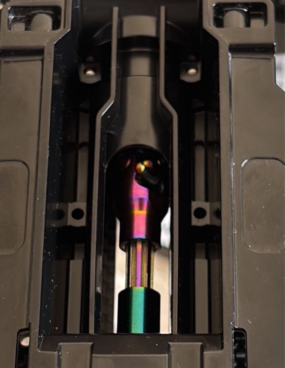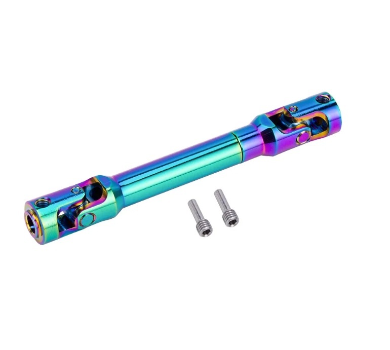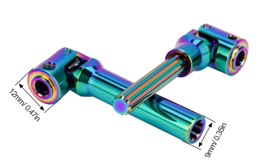 プロペラシャフト取付の前にスパーギヤシャフトとインプットシャフトのピン穴を2㎜から2.5㎜へ拡大が必要です2.5㎜ドリルで切削油等をつけながら加工してください純正のプラパーツプロペラシャフトからはかなりの重量増になりますので主にドレスアップ目的になります