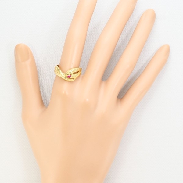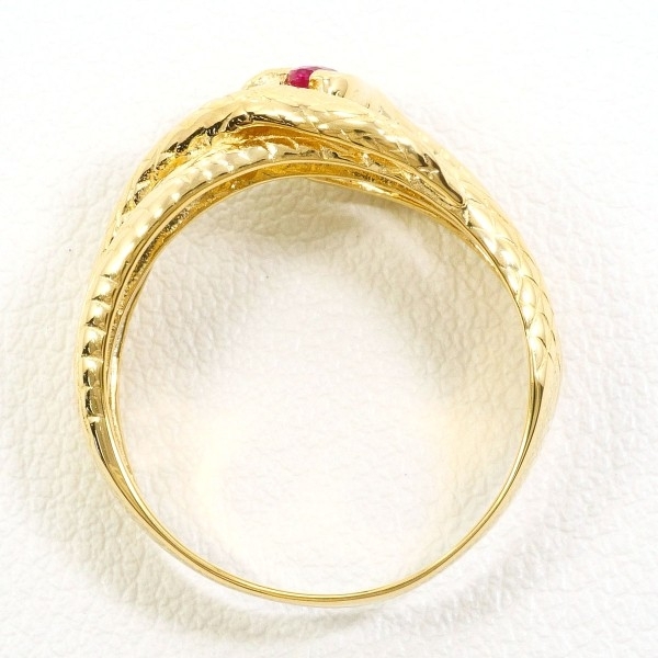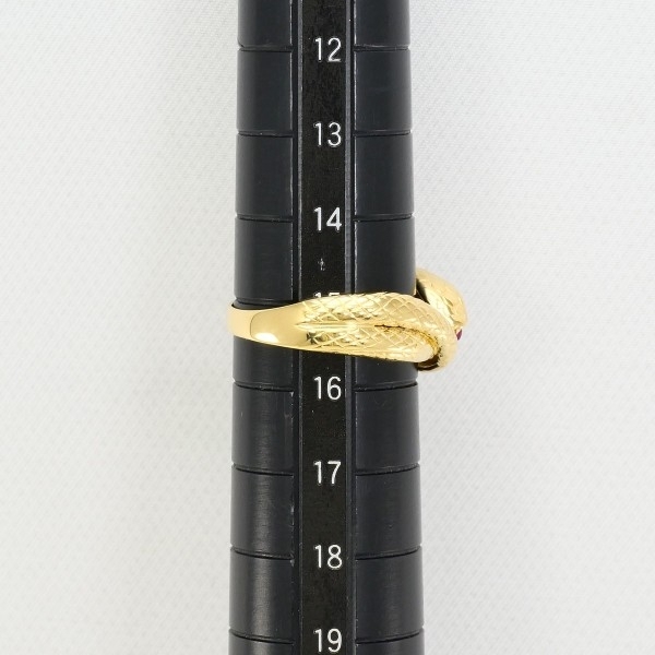 【素材】 K18/イエローゴールド 【石目】 ルビー 【総重量】 約4.6g 【サイズ】 約15号 【最大幅】 約9mm 【サイズ直し】 不可 【付属品】 なし 【商品の状態】 新品仕上げ済み 蛇(ヘビ スネーク)のモチーフです | |