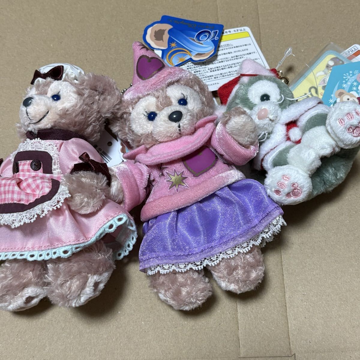 シェリーメイのぬいぐるみバッジ、ジェラトーニのストラップ、