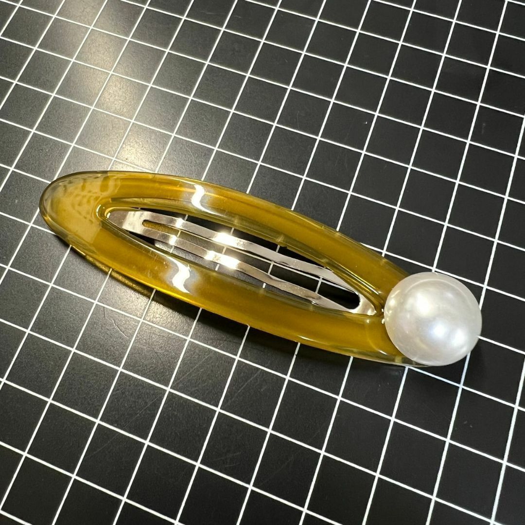 E499 匿名配送 パッチンどめ パール パッチンピン グリーン サイドグリップ ヘアピン 髪留め ヘアアクセサリー