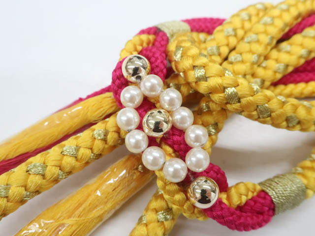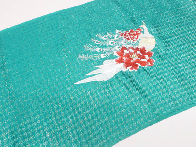 《京都一輝堂》【着物】 和装小物 帯締め 帯揚げ セット 帯締 帯揚 振袖用 刺繍 孔雀 丸組 飾り付き 金糸 25w05-6934