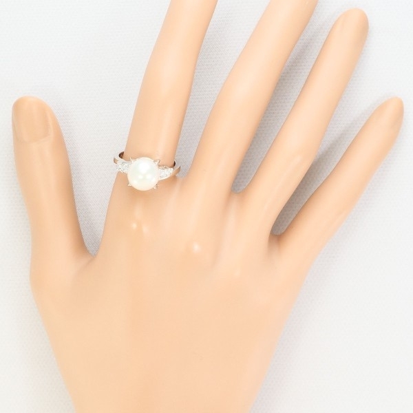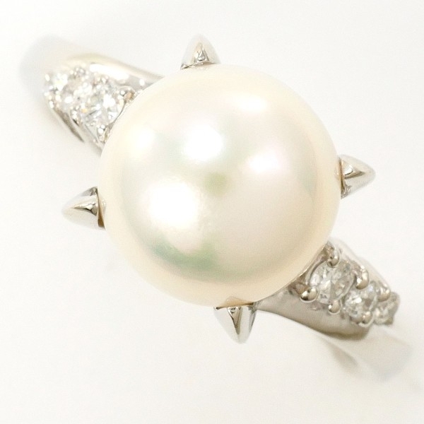 PT900 リング 指輪 13号 パール(真珠) 約9.5mm ダイヤ 0.12 総重量約7.6g 中古 美品 送料無料 | |