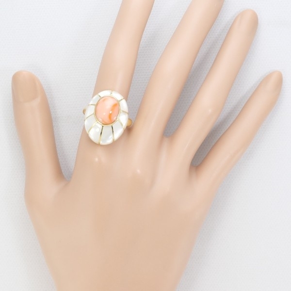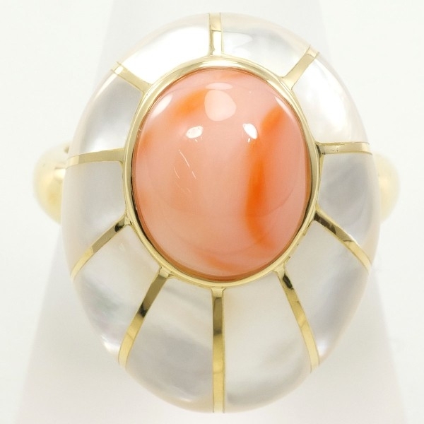 K18YG リング 指輪 17号 シェル サンゴ 鑑別書 総重量約7.1g 中古 美品 送料無料 | |