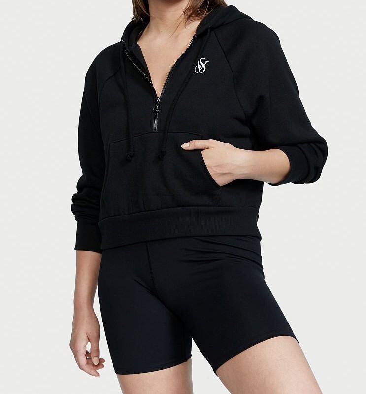 ☆VICTORIA'S SECRETハーフジップフーディ&ショーツのセット・S★ご希望の方にショップ紙袋同封可能!!【新品未使用】