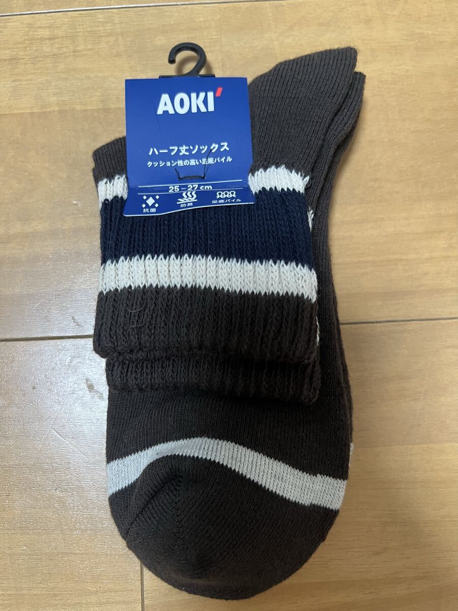 ブラウンのストライプデザインのハーフソックス、快適な履き心地を提供します。