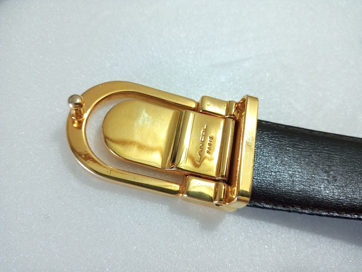 LANCEL 本革ベルト トップピン ウエスト75cm~81cm 28mm幅 黒色