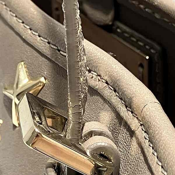 【ブランド】ジミーチュウ 【商品名】サシャS 【カラー】ベージュ系 【素材】レザー 【仕様】外側:ポケットなし 内側:ファスナー付ポケット×1 【サイズ】H約21cm×W約14cm×D約14cm 持ち手:約41cm 【付属品】保存袋 【ランク】B (使用感あり) 【状態】 持ち手:擦れ、ひび割れ、シワ、小程度有り 外側の状態:擦れ、角擦れ、汚れ、傷、小程度有り 内側の状態:擦れ、ほつれ、毛羽立ち、使用感、小程度有り 金具の状態:擦れ、傷、メッキ剥がれ、小程度有り 付属品の状態:シワ、毛羽立ち、使用感、小程度有り | |