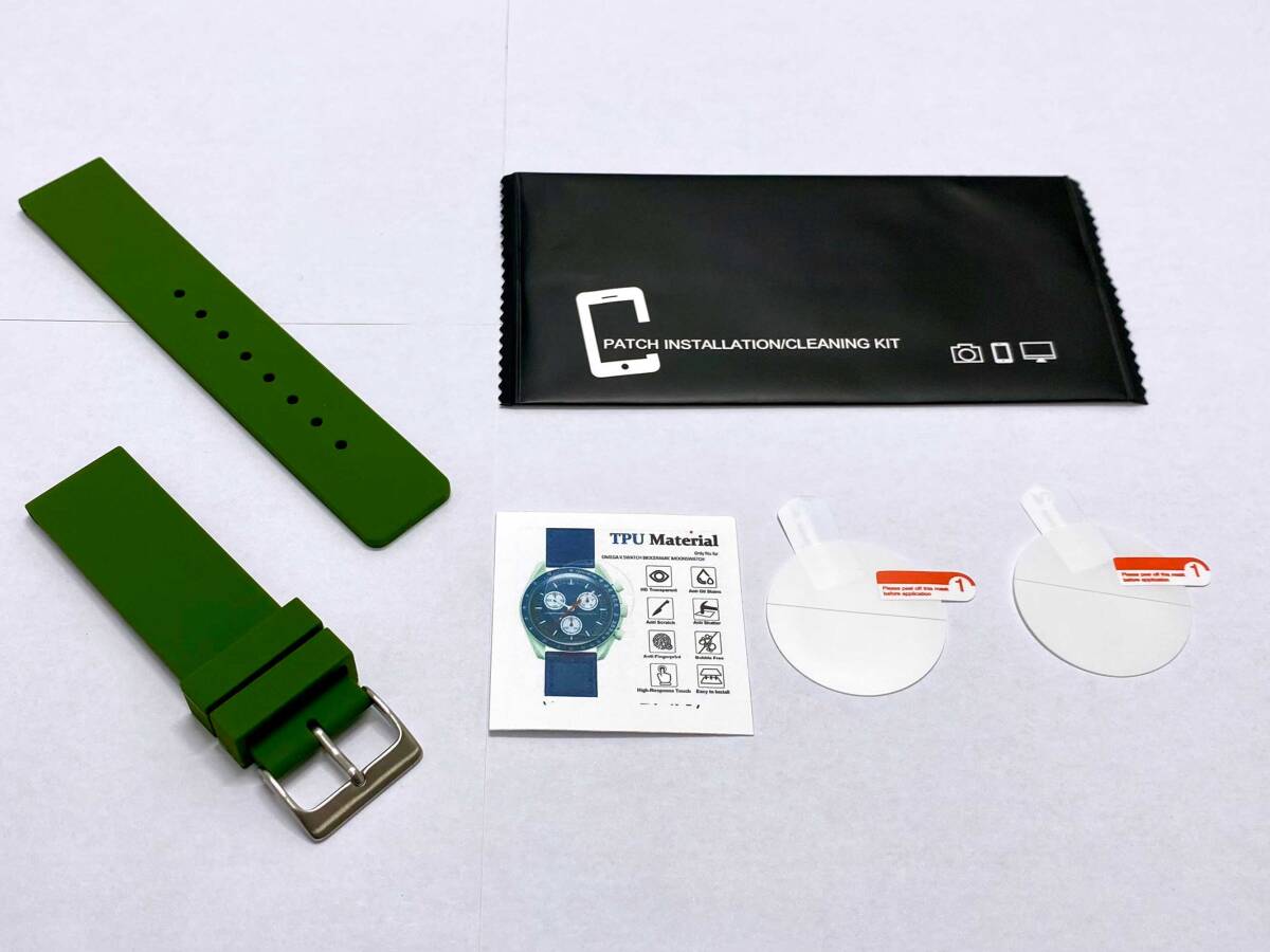 【未使用・修理部品】OMEGA X Swatch オメガ スウォッチ 対応 保護フィルム ラバーベルト セット おまけ-フィルム+1枚/バネ棒2本 / BY-1109
