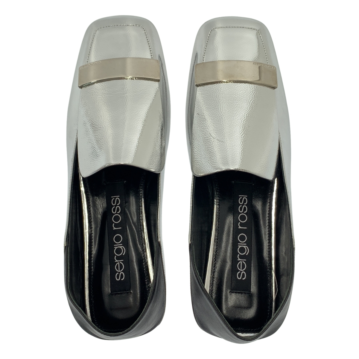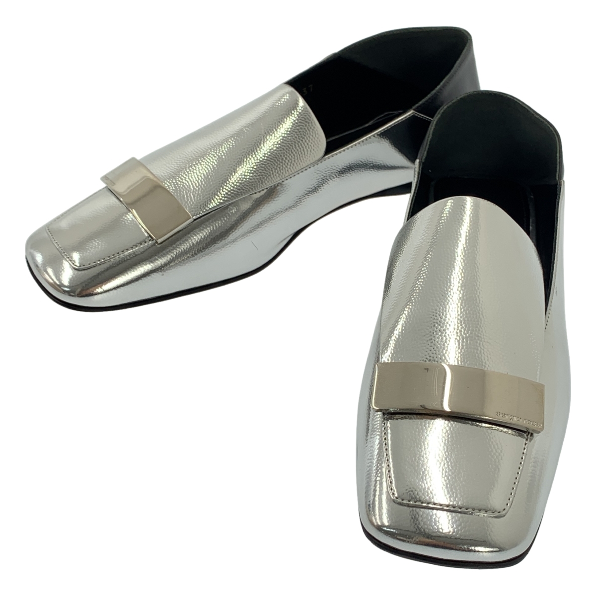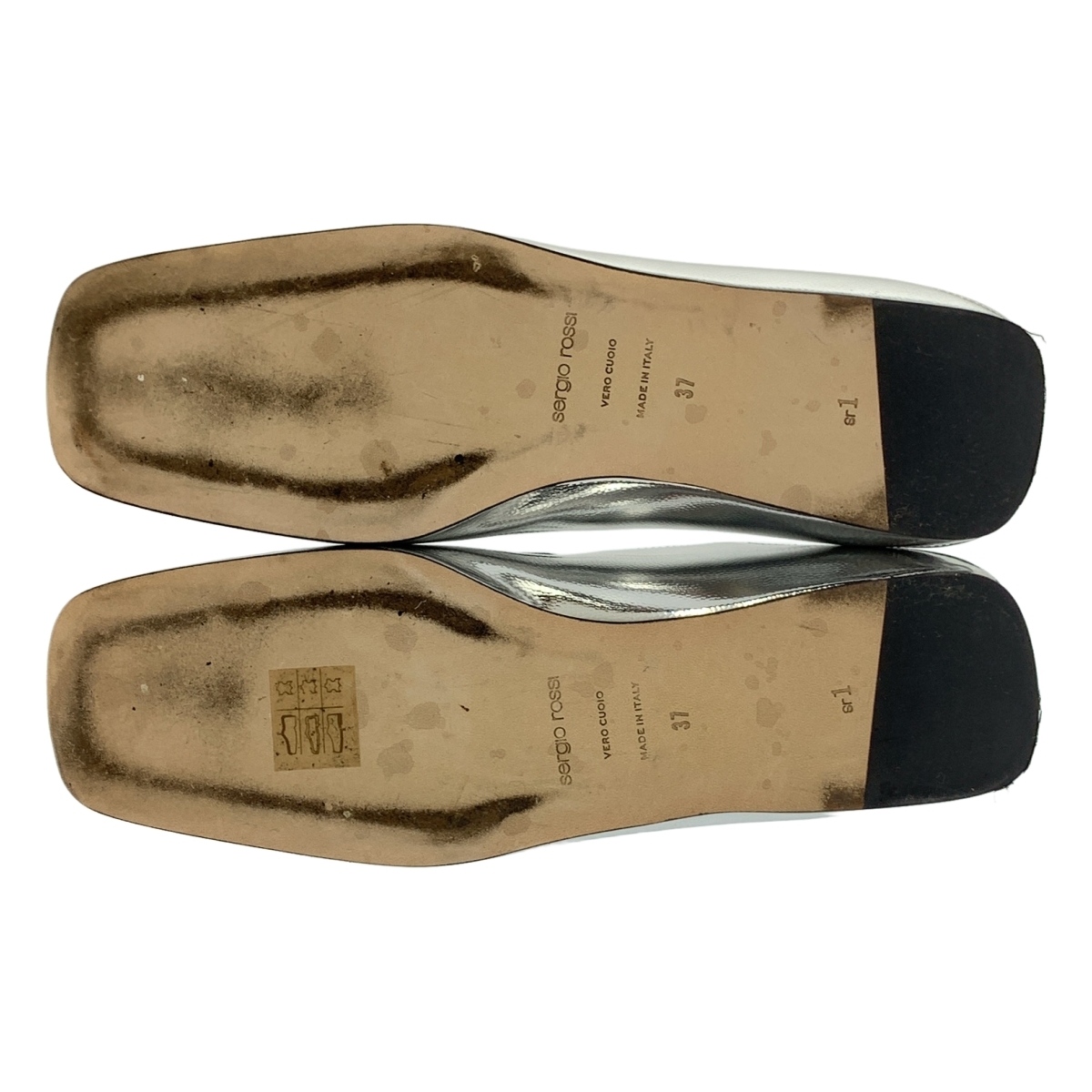 【美品】 sergio rossi / セルジオロッシ | SR1 スクエアトゥ メタルプレート フラットシューズ | 37 | シルバー | レディース