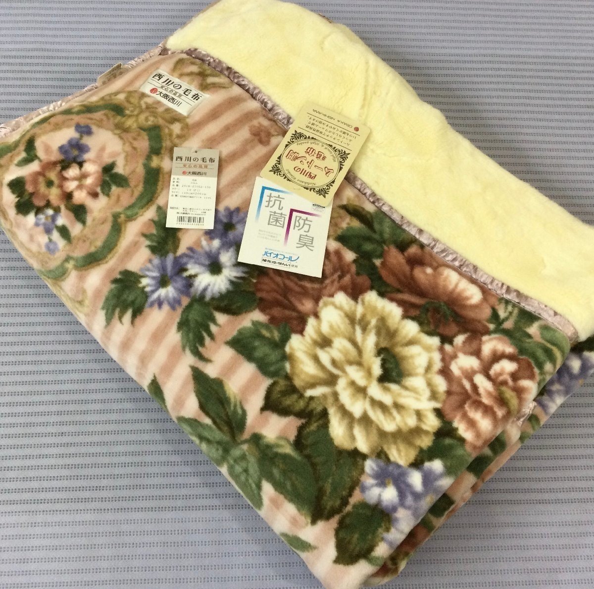 ◆6割引き★西川・ムートン調・アクリル・合わせ毛布◆抗菌・防臭★日本製★シングルサイズ・140x200㎝