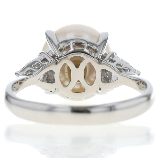 | 商品紹介 | Pt900プラチナ製のリングです。 南洋真珠の豊かな光沢を際立たせるように、ダイヤモンドを巧みに配したエレガントなデザインです。 堂々とした存在感のあるデザインで、手元を華やかに引き立てるジュエリーです。 |