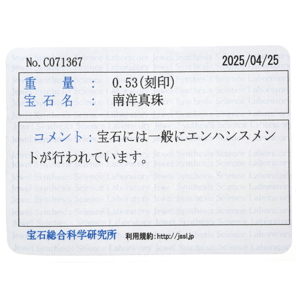| 石目 | 南洋真珠11.3mm ダイヤモンド0.53ct |