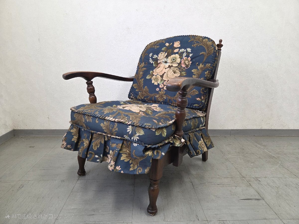 飛騨産業 穂高 キツツキ 両肘付チェア 1人掛けソファ 椅子 ノスタルジック 昭和レトロ パーソナルソファ 花柄