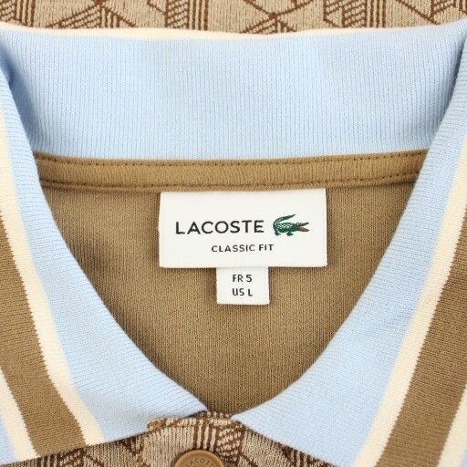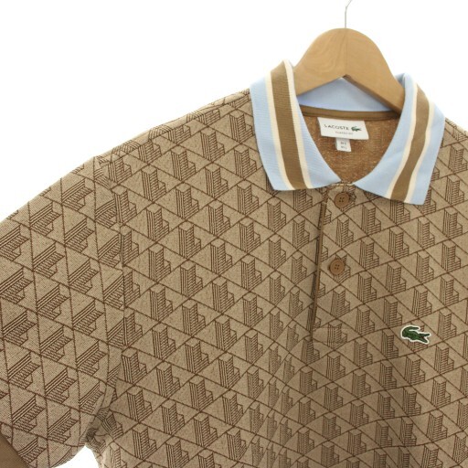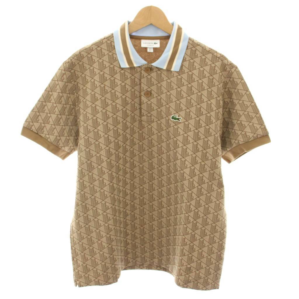 ラコステ LACOSTE モノグラムジャカードポロシャツ 半袖 ワッペン FR5 ベージュ 水色 ライトブルー DH1417 /YT メンズ
