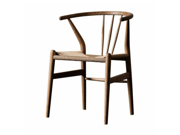 北欧デザイナーズチェア風のチェア。ホワイトオーク材を使用したフレームのアームから背に掛けての美しいプロポーションと、手編みによるペーパーコード座面ならではの座り心地がお楽しみ頂けます。